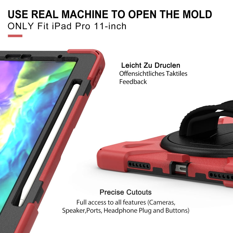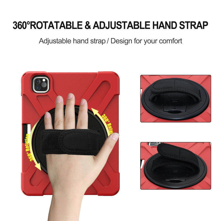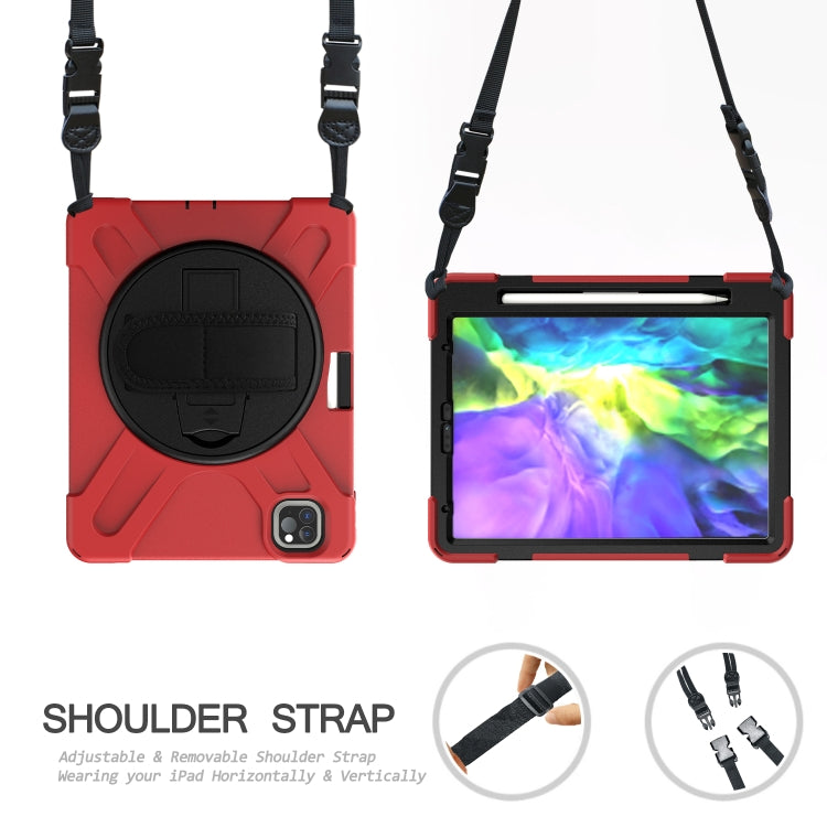 360 Degree Rotation Silicone Protective Cover with Holder & Hand Strap & Long Strap & Pencil Slot For iPad Air 2025 / 10.9 / Pro 11 2021 / 2020 / 2018(Red)