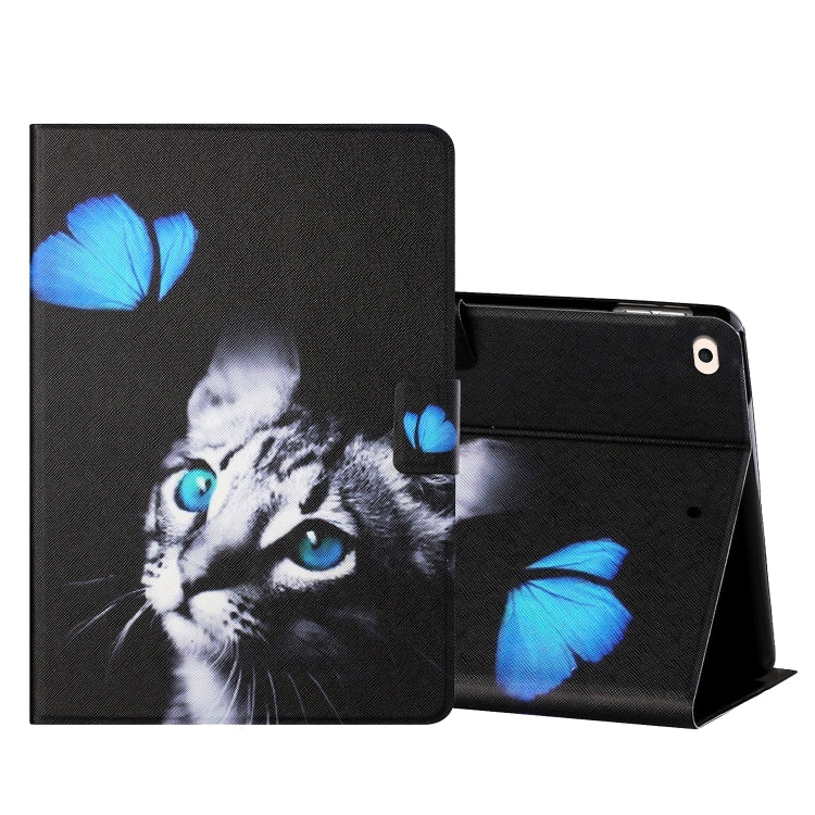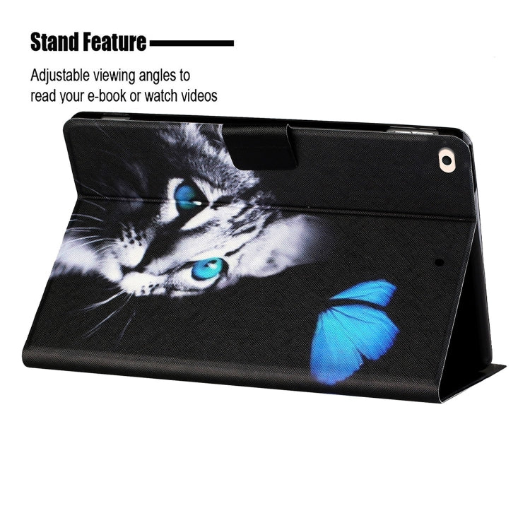 Colored Drawing Horizontal Flip Leather Case with Holder & Card Slots & Sleep / Wake-up Function For iPad Air / Air 2 / 2017 / 2018(Butterfly Cat)