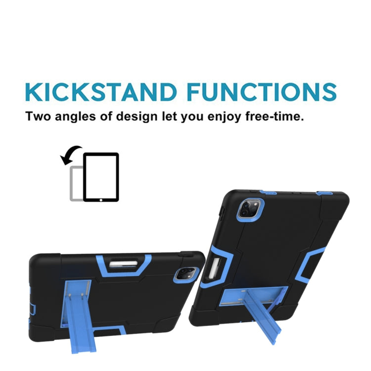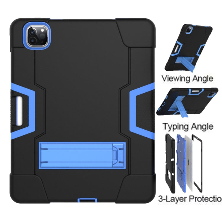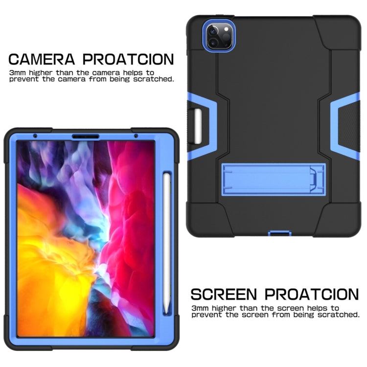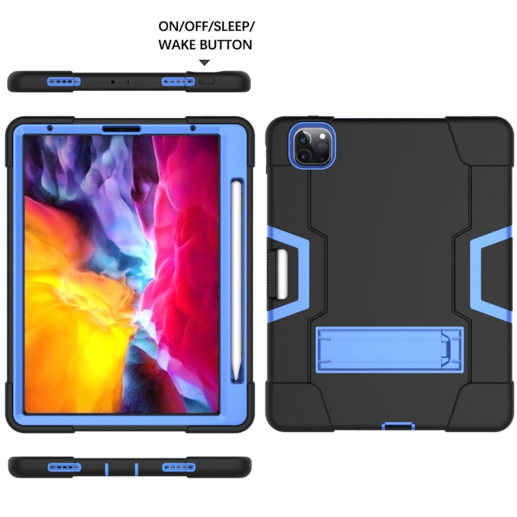 Contrast Color Robot Shockproof Silicone + PC Protective Case with Holder & Pen Slot For iPad Pro 12.9 (2018) / (2020)(Black + Blue)