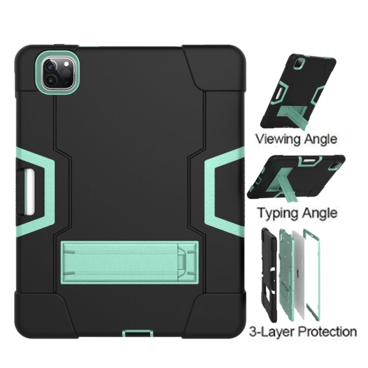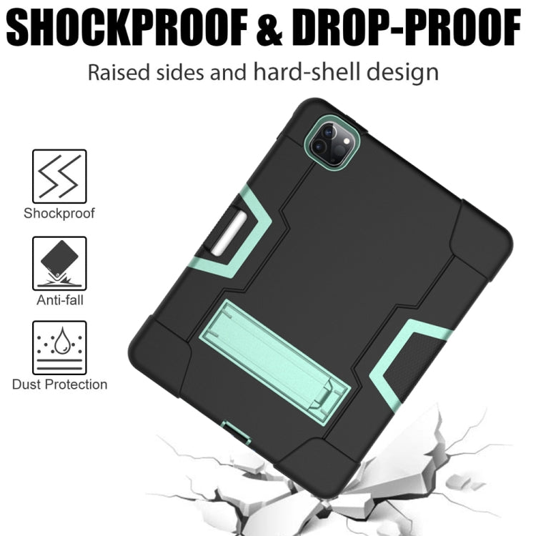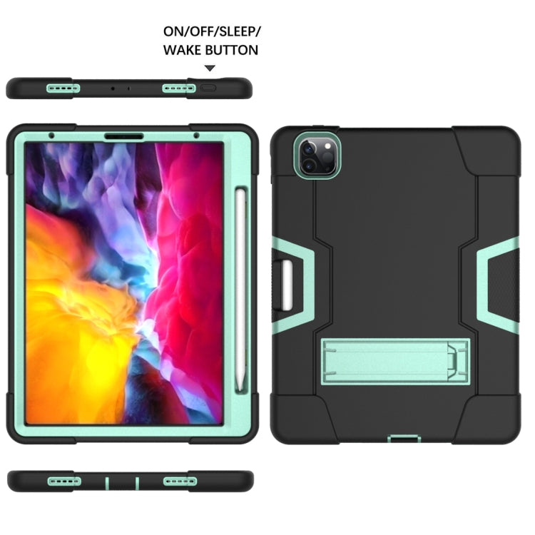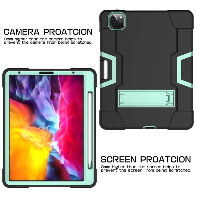 Contrast Color Robot Shockproof Silicone + PC Protective Case with Holder & Pen Slot For iPad Pro 12.9 (2018) / (2020)(Black + Mint Green)