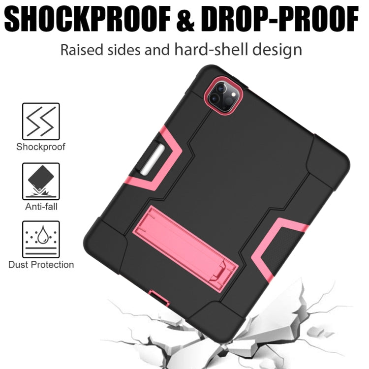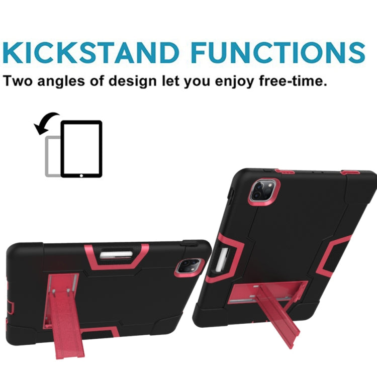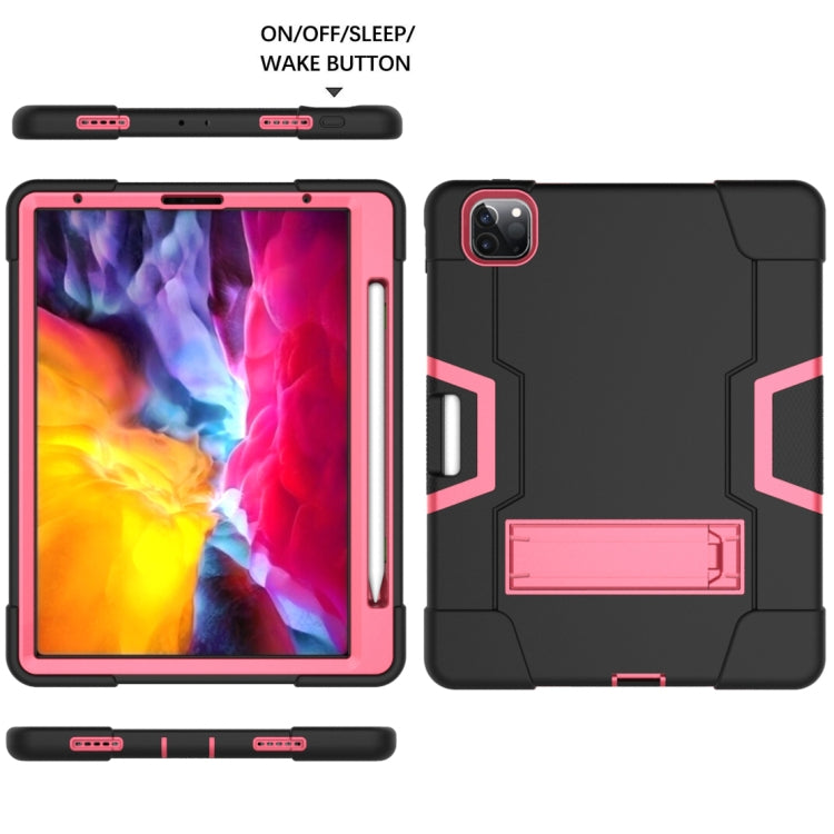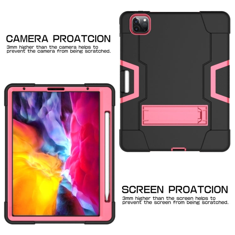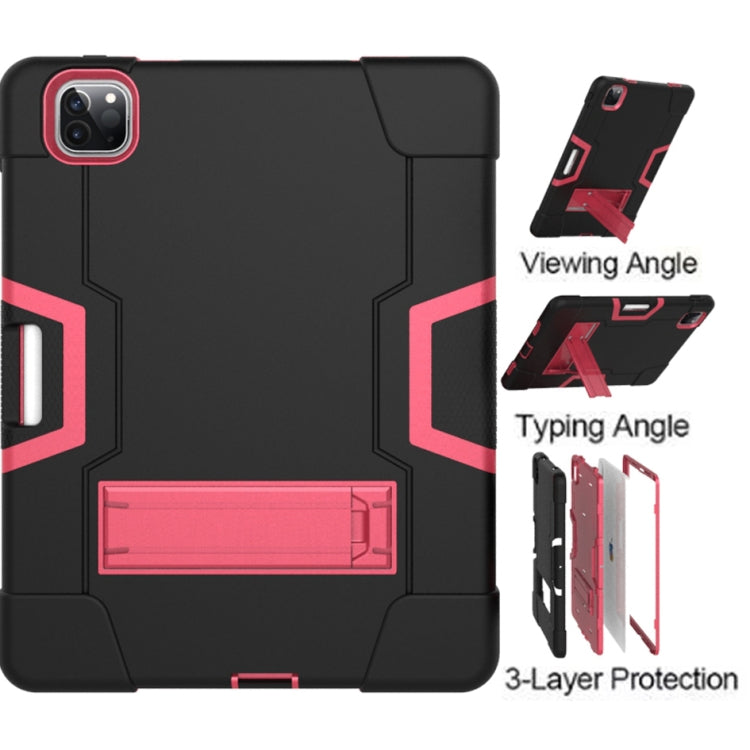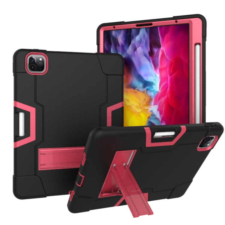 Contrast Color Robot Shockproof Silicone + PC Protective Case with Holder & Pen Slot For iPad Pro 12.9 (2018) / (2020)(Black + Rose Red)