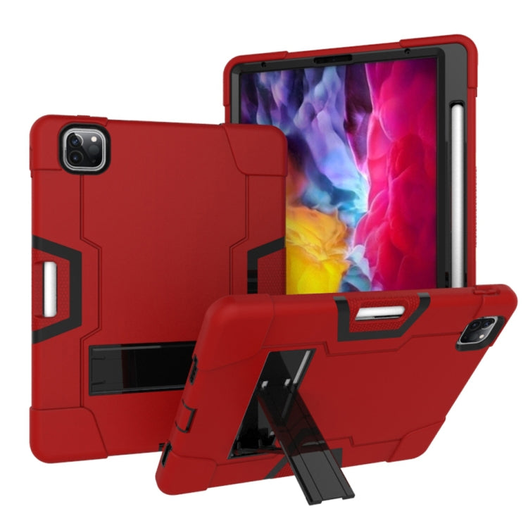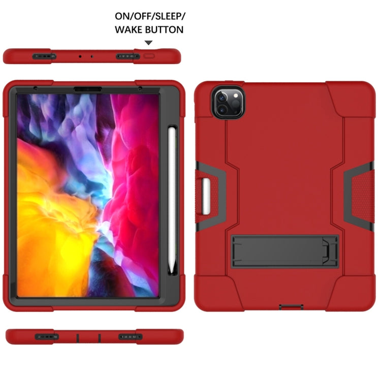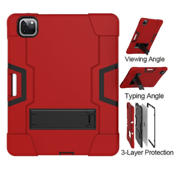 Contrast Color Robot Shockproof Silicone + PC Protective Case with Holder & Pen Slot For iPad Pro 12.9 (2018) / (2020)(Red + Black)
