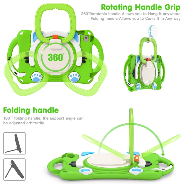 Cute Cat King Kids Shockproof Silicone Tablet Case with Holder & Shoulder Strap & Handle For iPad mini 2019 / 4 / 3 / 2 / 1(Green)