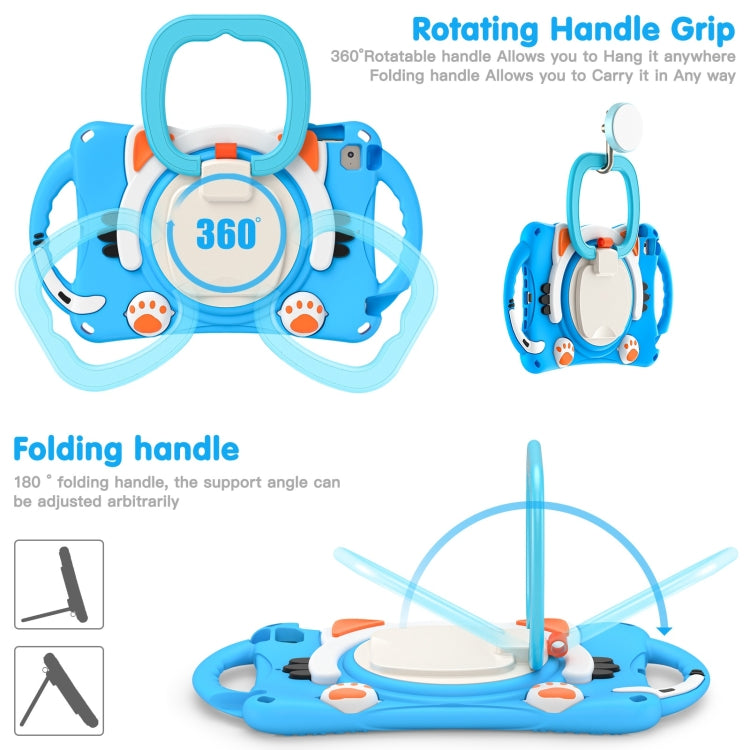 Cute Cat King Kids Shockproof Silicone Tablet Case with Holder & Shoulder Strap & Handle For iPad mini 2019 / 4 / 3 / 2 / 1(Light Blue)