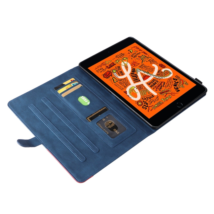 Dual-color Splicing Horizontal Flip PU Leather Case with Holder & Card Slots & Sleep / Wake-up Function For iPad mini/mini 2/mini 3/mini 4/mini(2019)(Blue)