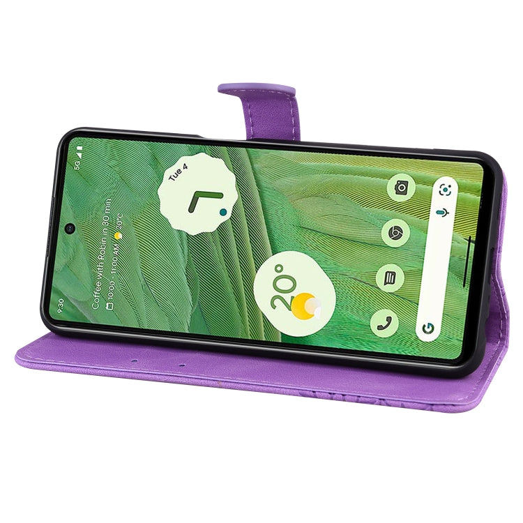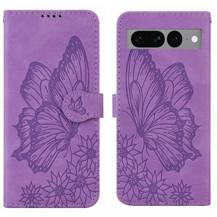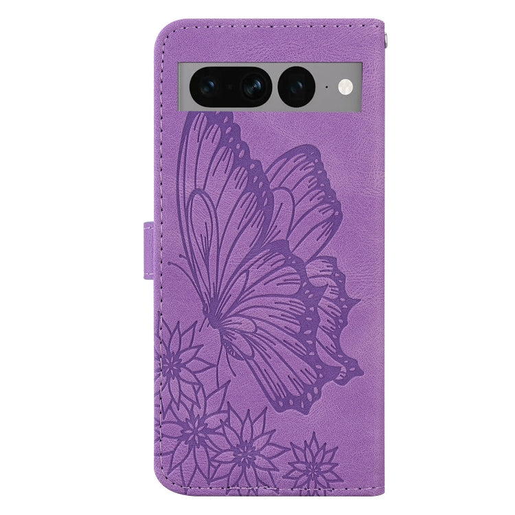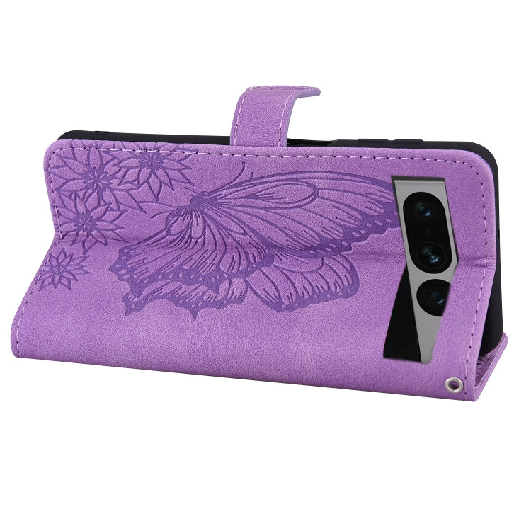 For Google Pixel 7 Pro 5G Retro Skin Feel Butterflies Embossing Horizontal Flip Leather Phone Case(Purple)