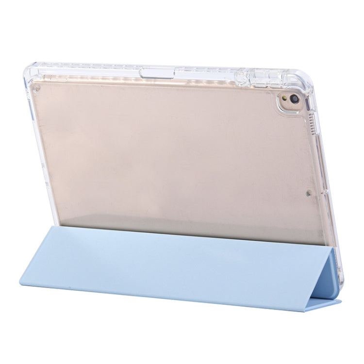For iPad 10.2 2021 / 2020 / 10.5 3-Fold Lock Buckle Leather Smart Tablet Case(Sky Blue)