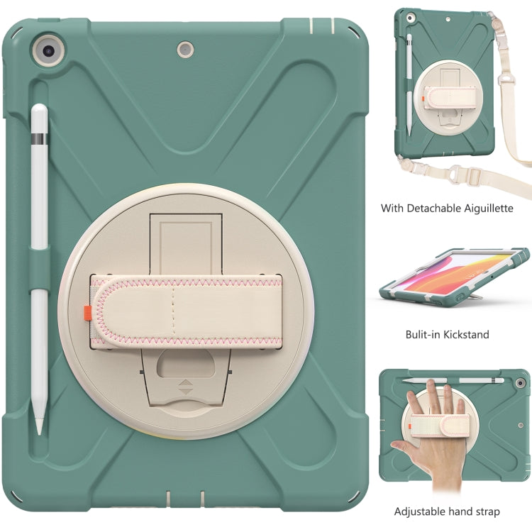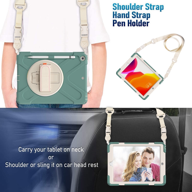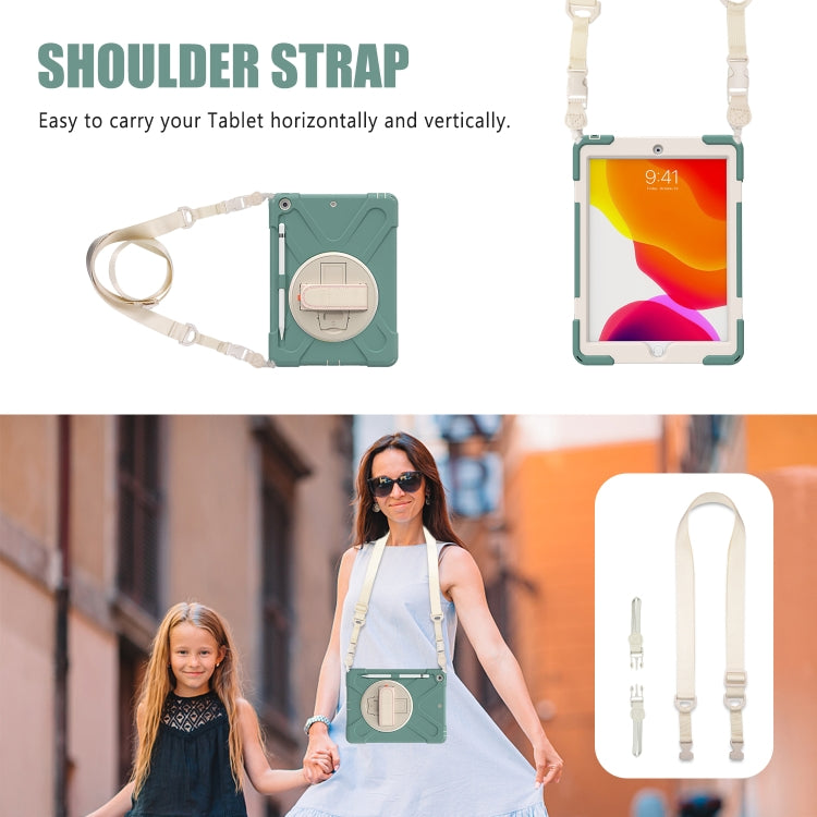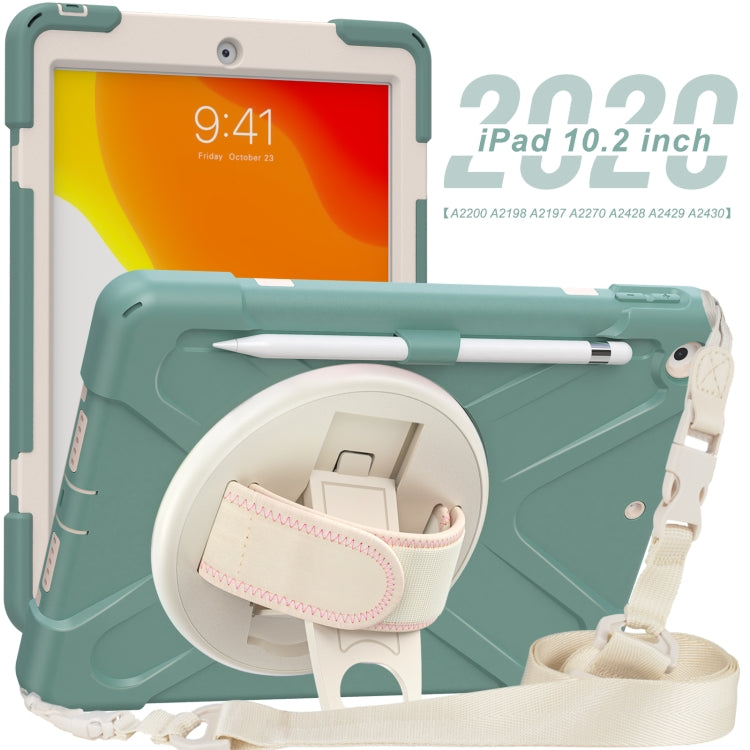For iPad 10.2 2021 / 2020 / 2019 Pure Color Silicone + PC Protective Case with Holder & Shoulder Strap(Emerald Green)