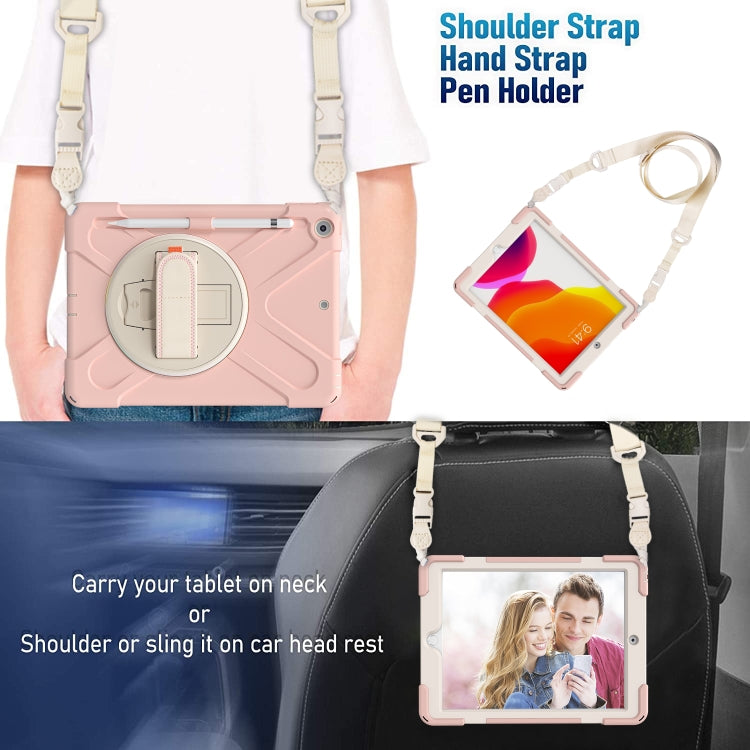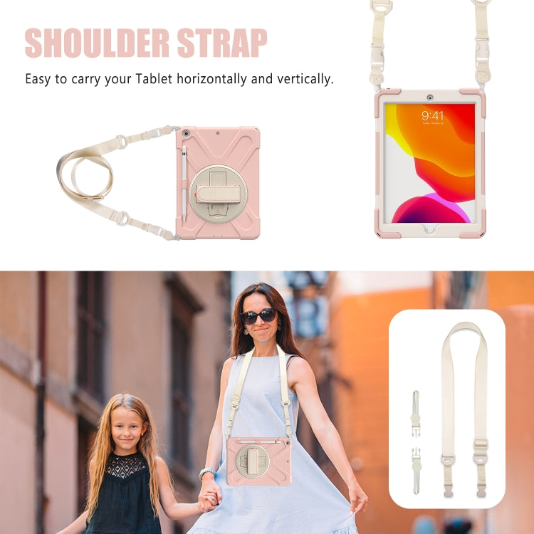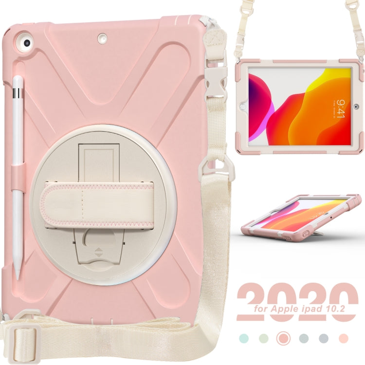 For iPad 10.2 2021 / 2020 / 2019 Pure Color Silicone + PC Protective Case with Holder & Shoulder Strap(Sakura Pink)