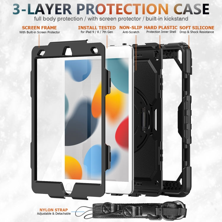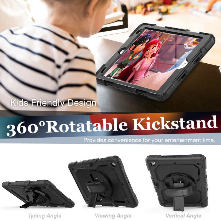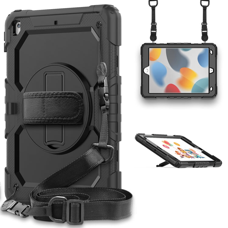 For iPad 10.2 2021 / 2020 / 2019 Shockproof Silicone + PC Protective Case with Holder & Shoulder Strap & Pen Slot(Black)