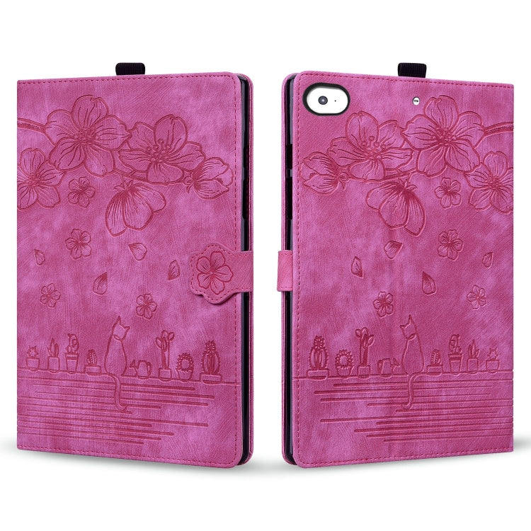 For iPad mini 5 / 4 / 3 / 2 / 1 Cartoon Sakura Cat Embossed Smart Leather Tablet Case(Rose Red)