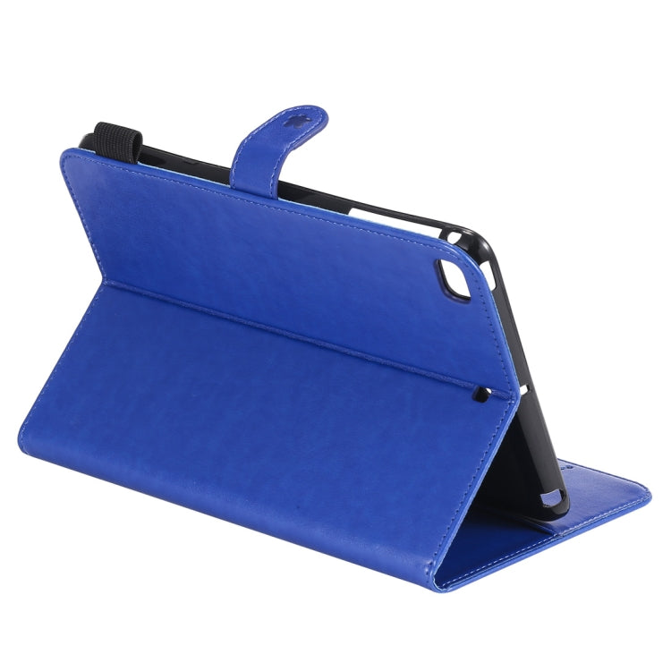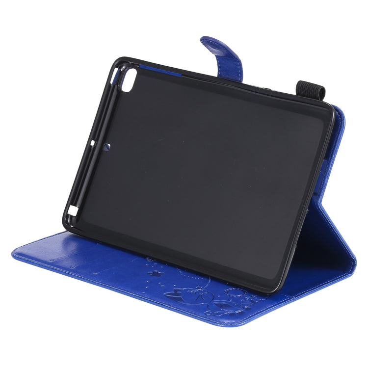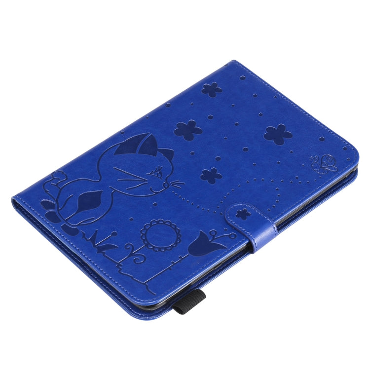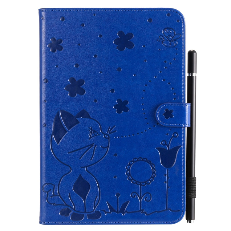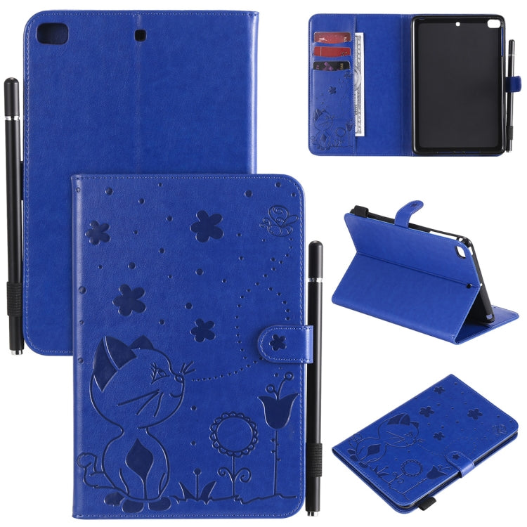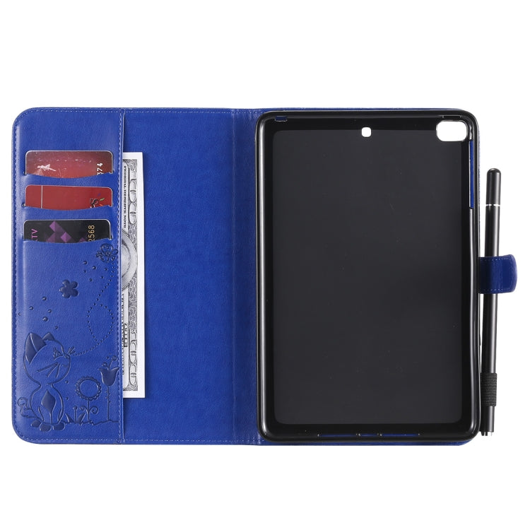 For iPad mini 5 / 4 / 3 / 2 / 1 Cat Bee Embossing Pattern Horizontal Flip Leather Case with Holder & Card Slots & Wallet & Pen Slot & Wake-up / Sleep Function(Blue)