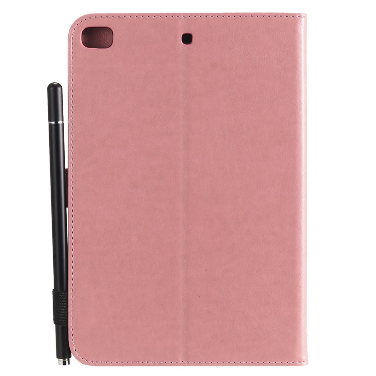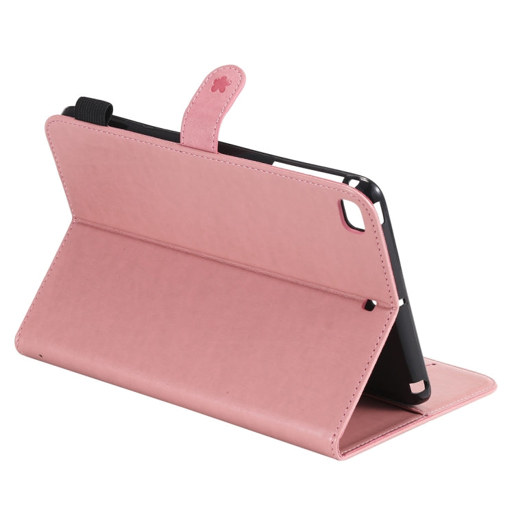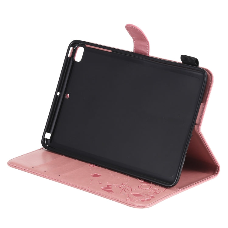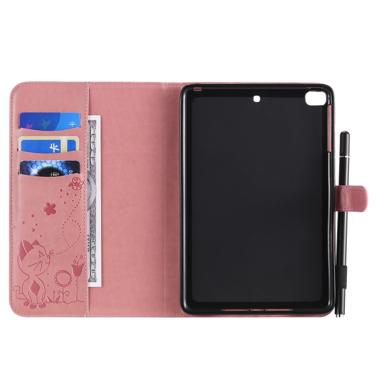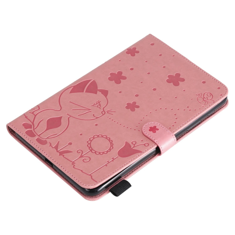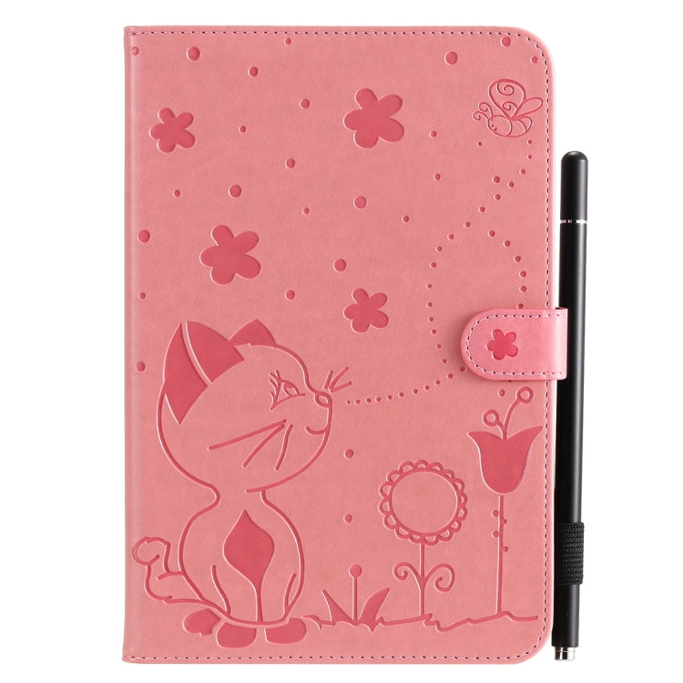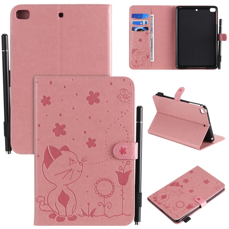 For iPad mini 5 / 4 / 3 / 2 / 1 Cat Bee Embossing Pattern Horizontal Flip Leather Case with Holder & Card Slots & Wallet & Pen Slot & Wake-up / Sleep Function(Pink)
