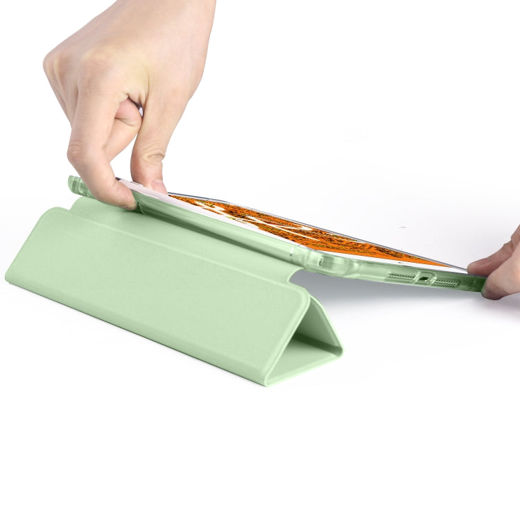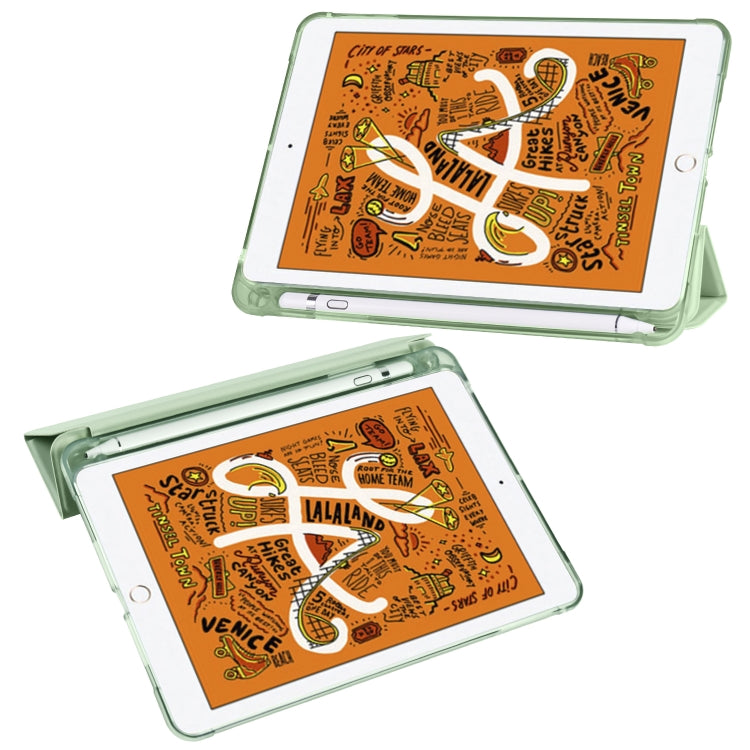 For iPad Mini 5 / Mini 4 3-folding Horizontal Flip PU Leather + Shockproof TPU Case with Holder & Pen Slot(Matcha Green)