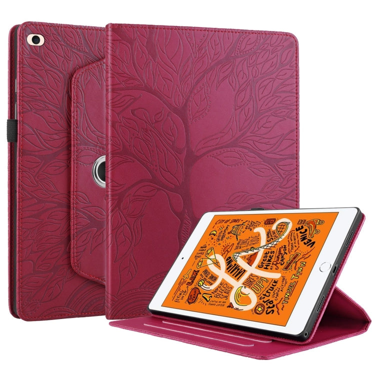 For iPad mini 5 / mini 4 / mini 3 Tree Life Embossed Rotation Leather Smart Tablet Case(Red)