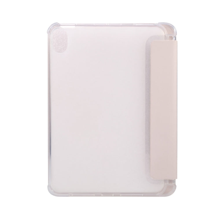For iPad mini 6 / mini 2024 Voltage Skin Texture Transparent TPU Smart Leather Tablet Case with 3-Folding Holder & Pen Slot(Light Pink)
