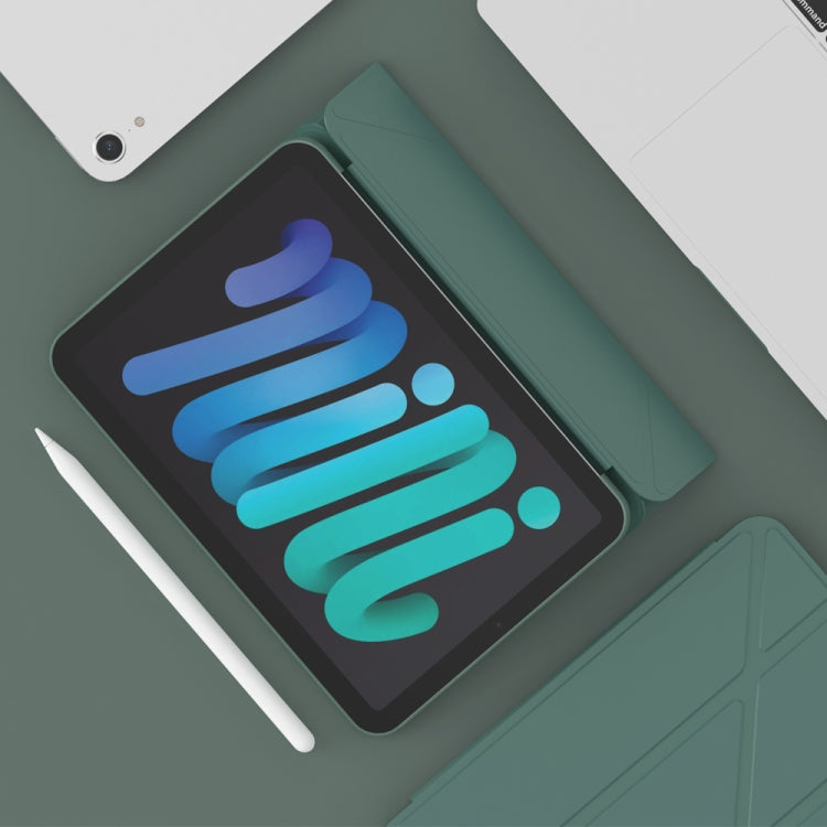 For iPad mini 2024 / mini 6 Double-sided Matte Deformation TPU Tablet Leather Case with Holder & Sleep / Wake-up Function(Dark Night Green)