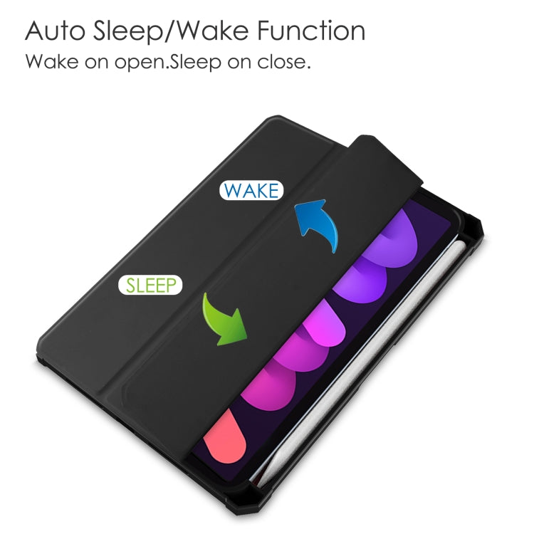 For iPad mini 6 / mini 2024 Tri-folding Acrylic TPU Smart Leather Tablet Case with Holder & Pen Slot(Black)