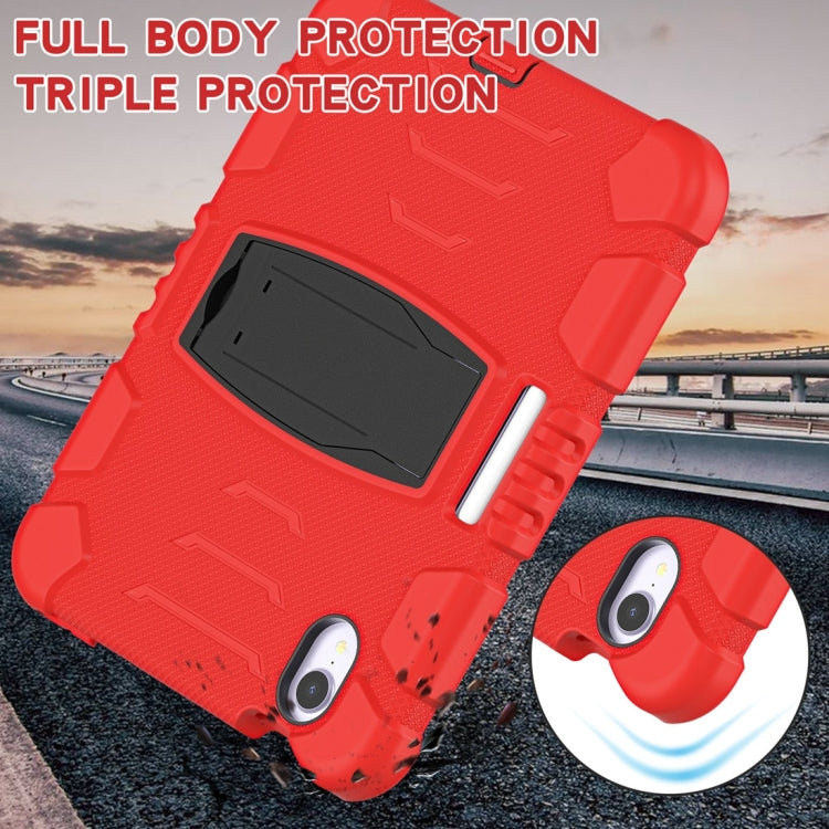 For iPad mini 6 / mini 2024 Tri-Layer Protection Screen Frame Heavy Duty PC Hybrid Silicone Case with Holder(Red+Black)