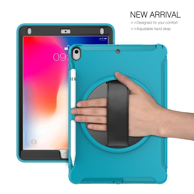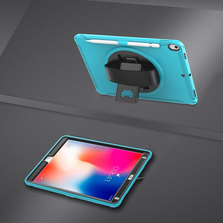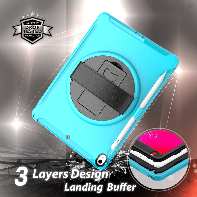 For iPad Pro 10.5 inch 360 Degree Rotation PC+TPU Protective Cover with Holder & Hand Strap(Light Blue)