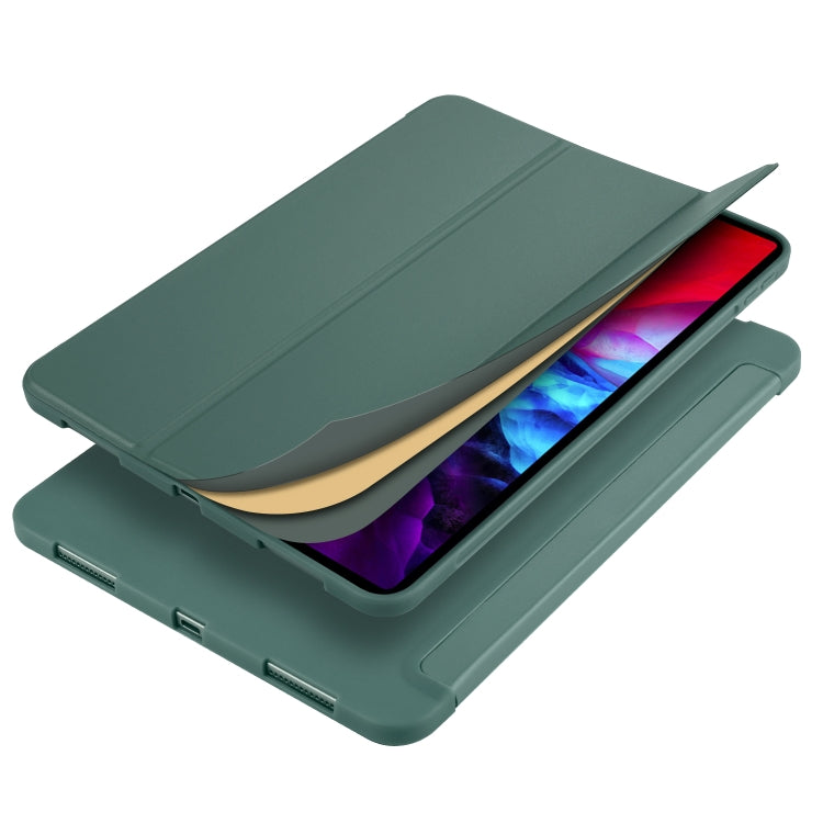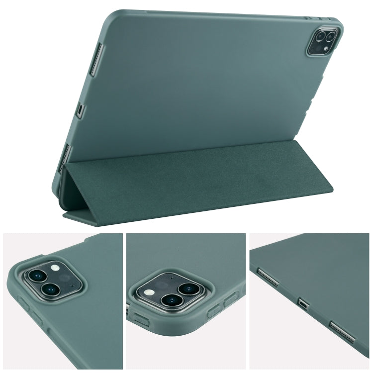 For iPad Pro 11 (2020) 3-folding Horizontal Flip PU Leather + Shockproof Honeycomb TPU Tablet Case with Holder(Pine Green)