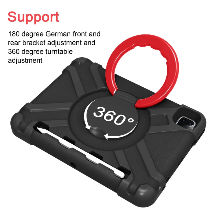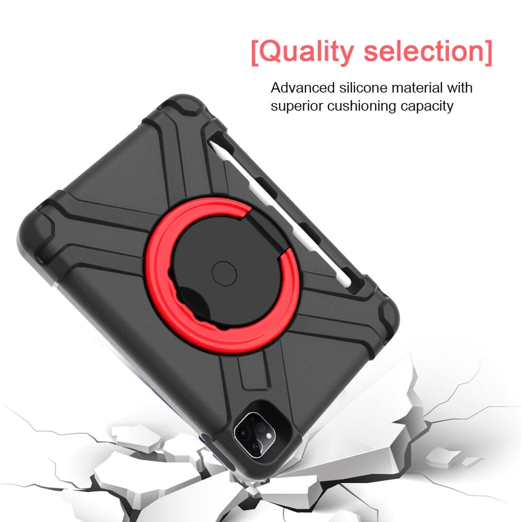 For iPad Pro 11 (2020) PC + Silicone Shockproof Combination Tablet Case with 360 Degree Rotating Holder & Handle(Black+Red)