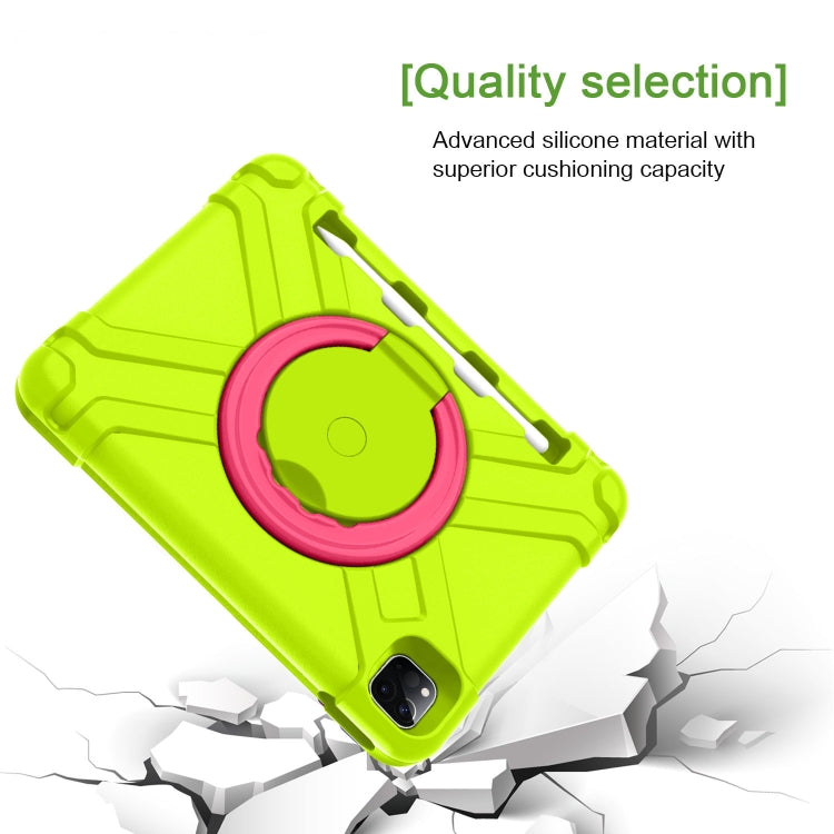 For iPad Pro 11 (2020) PC + Silicone Shockproof Combination Tablet Case with 360 Degree Rotating Holder & Handle(Grass Green+Rose Red)