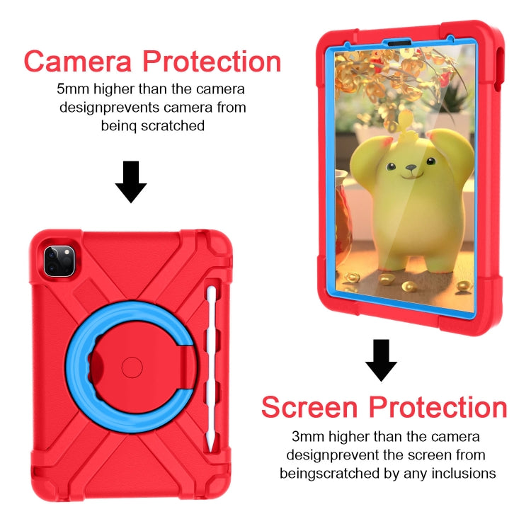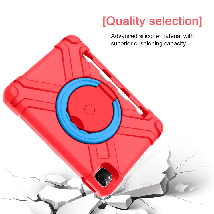 For iPad Pro 11 (2020) PC + Silicone Shockproof Combination Tablet Case with 360 Degree Rotating Holder & Handle(Red+Blue)