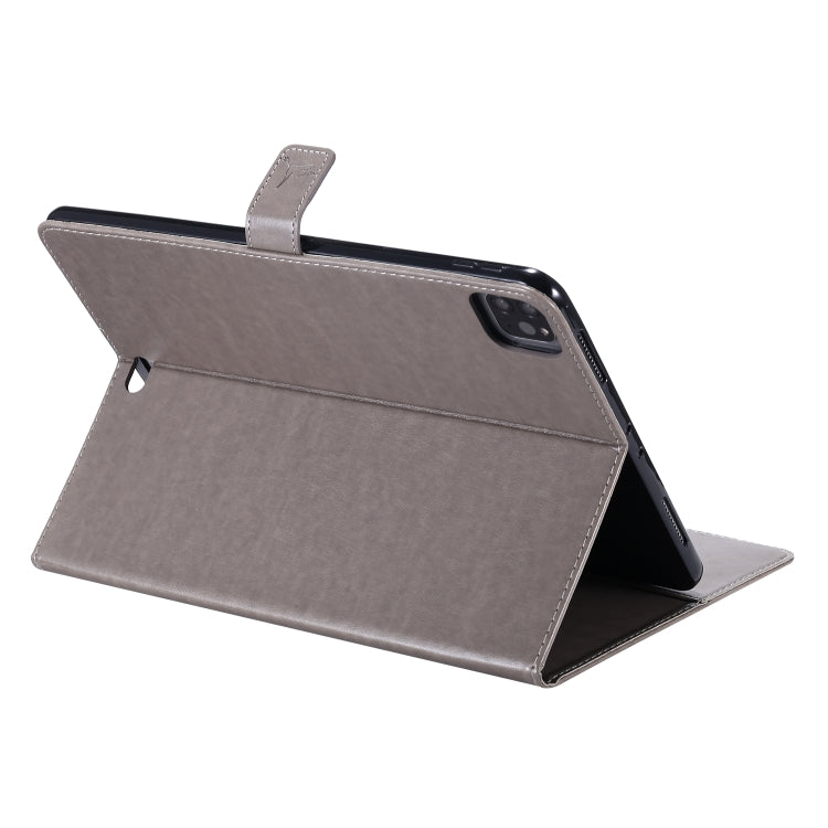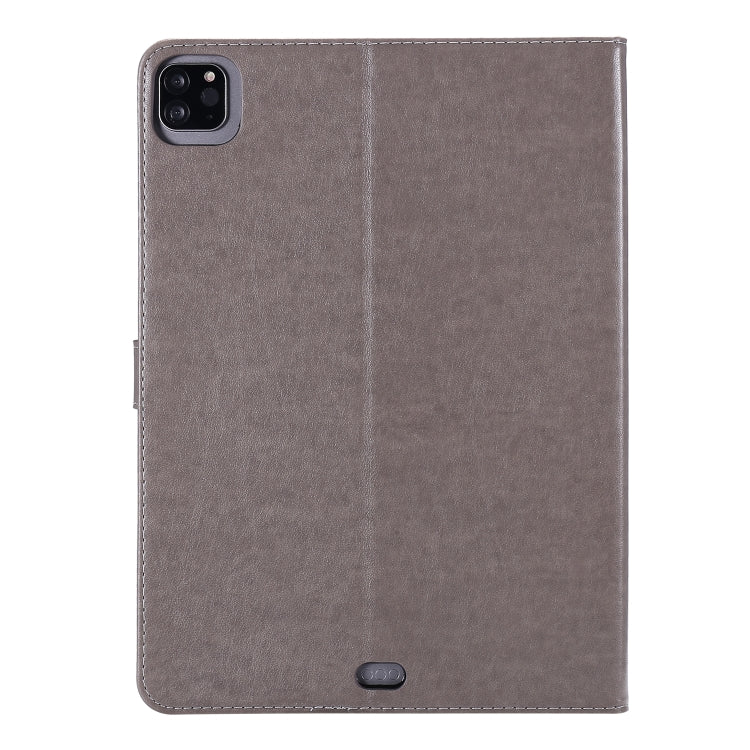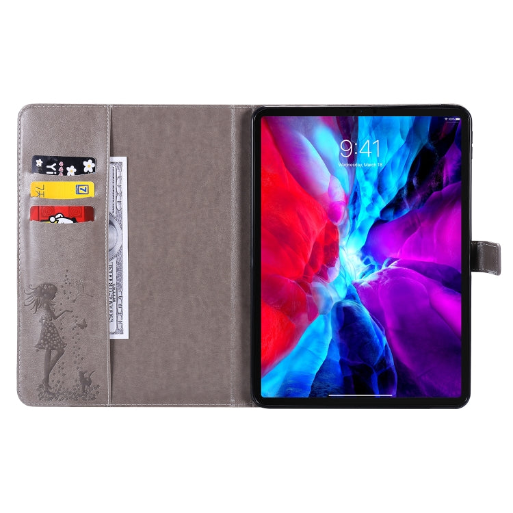 For iPad Pro 11 (2020) Pressed Printing Woman and Cat Pattern Horizontal Flip Leather Tablet Case with Holder & Card Slots & Wallet(Grey)
