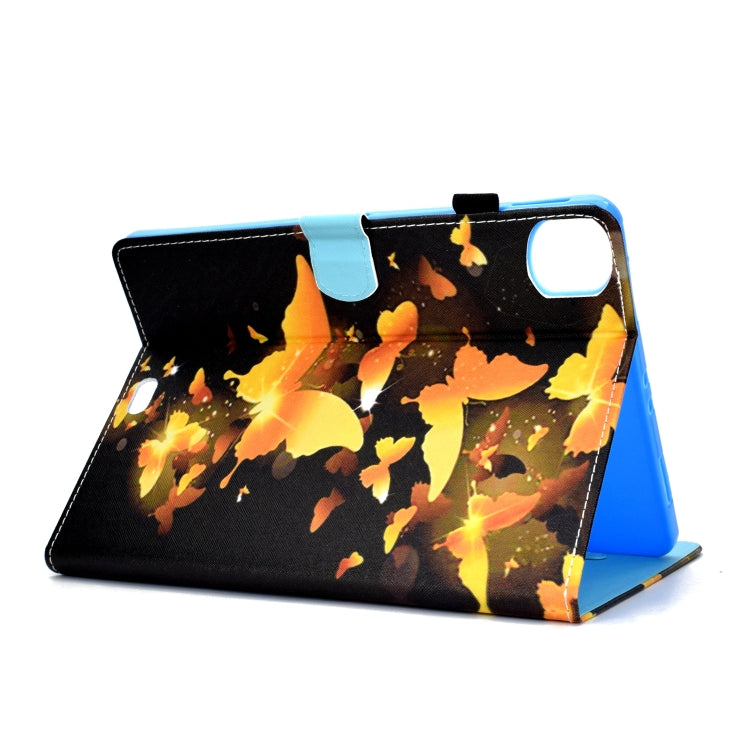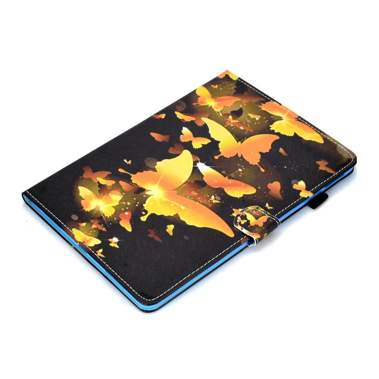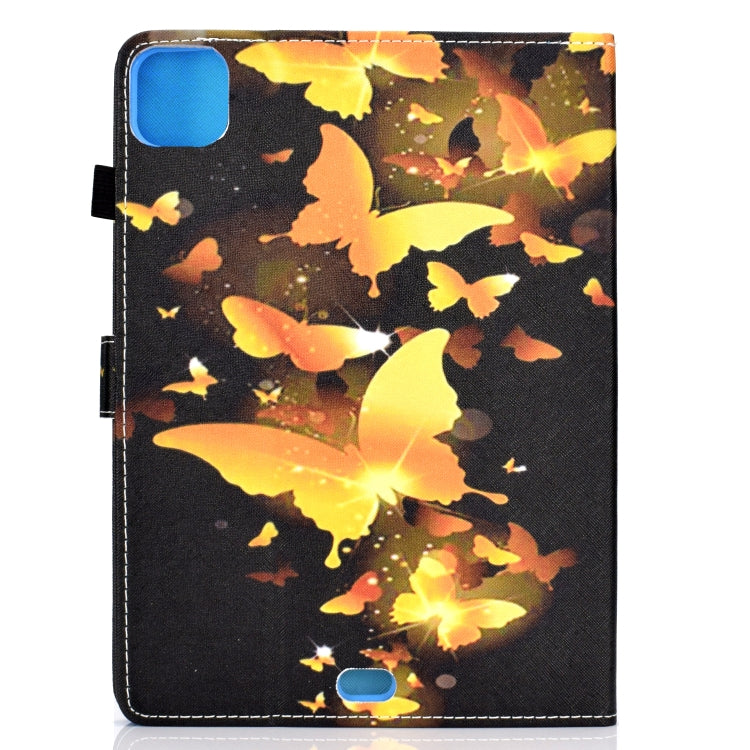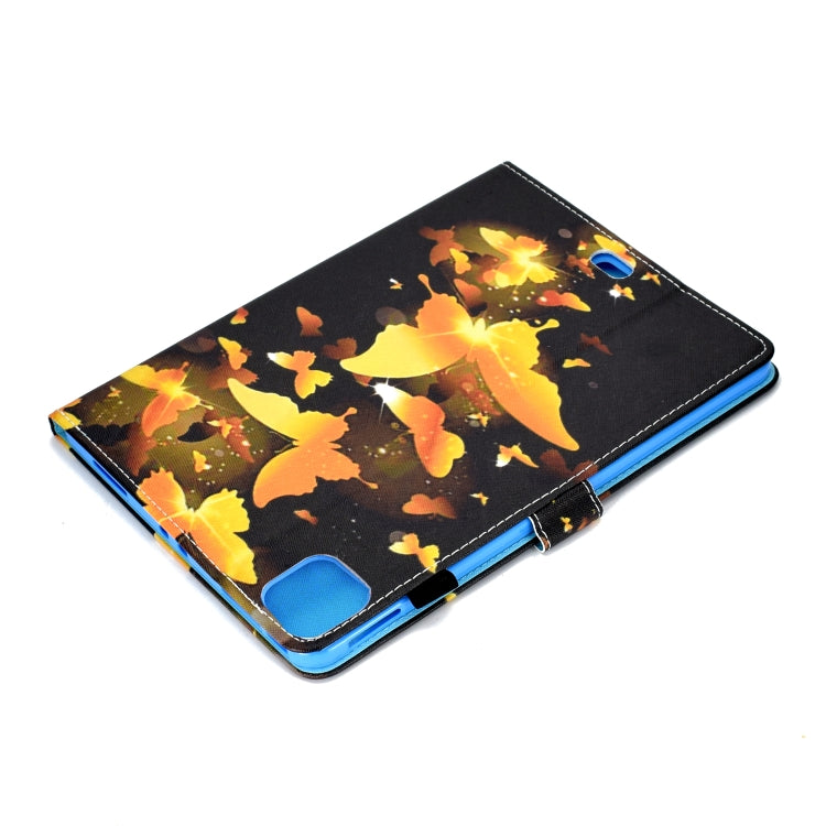 For iPad Pro 11 2020 Sewing Thread TPU Left and Right Flat Leather Tablet Case with Sleep Function & Card Slot & Buckle Anti-skid Strip and Pen Cover(Golden Butterfly)