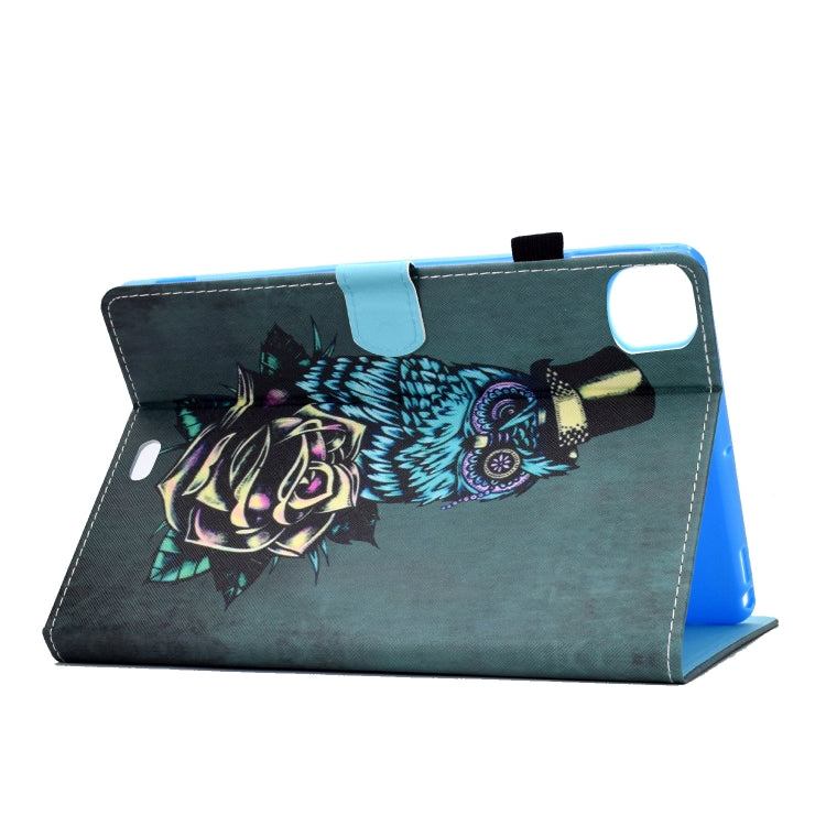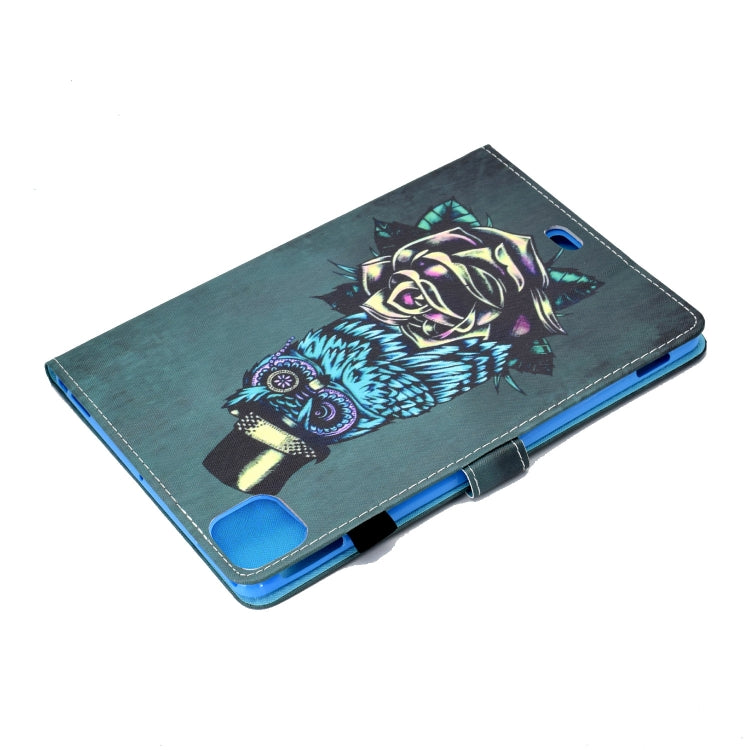 For iPad Pro 11 2020 Sewing Thread TPU Left and Right Flat Leather Tablet Case with Sleep Function & Card Slot & Buckle Anti-skid Strip and Pen Cover(Rose Owl)