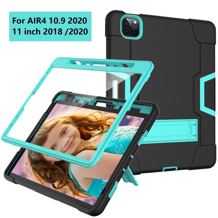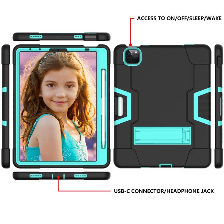 For iPad Pro 11 Contrast Color Silicone + PC Combination Case with Holder(Black + Aqua)