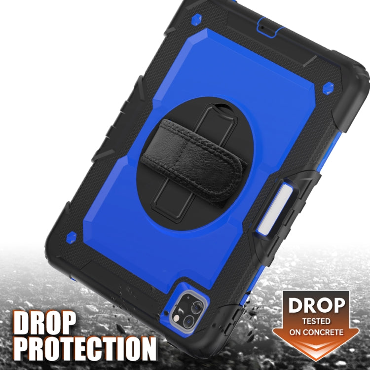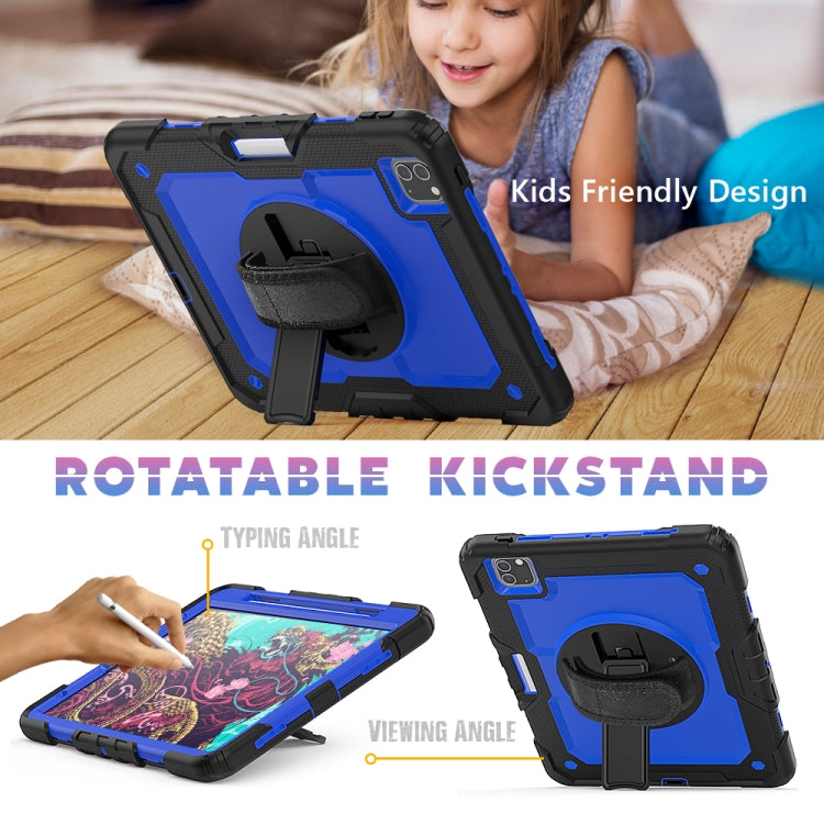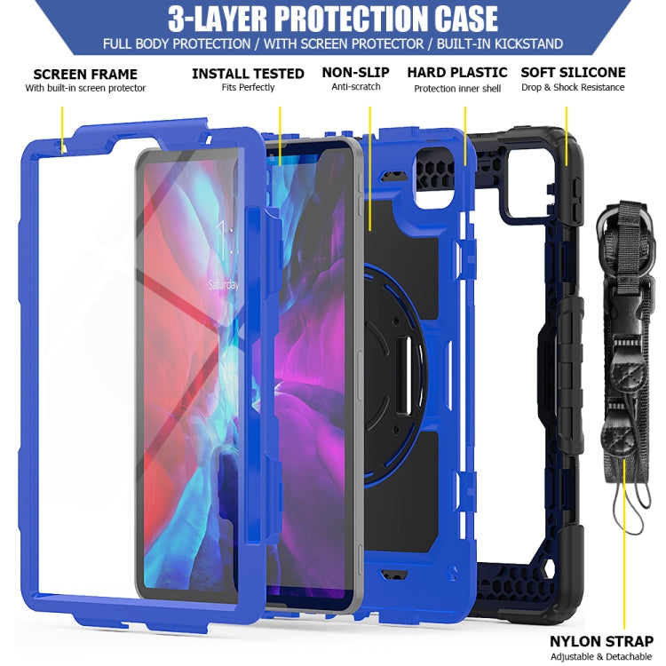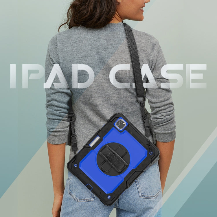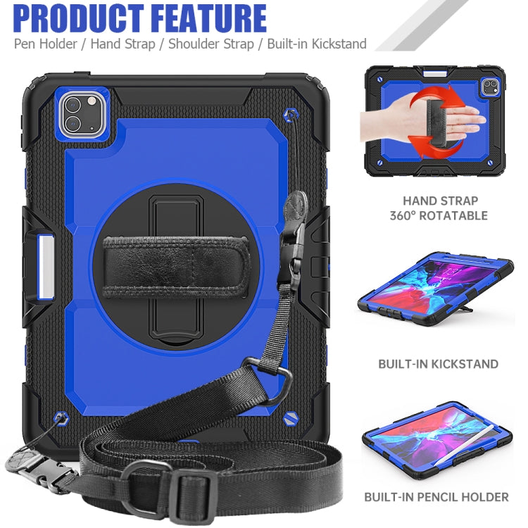 For iPad Pro 11 inch (2018) / Pro 11 inch (2020) Shockproof Black Silica Gel + Colorful PC Protective Tablet Case with Holder & Shoulder Strap & Hand Strap & Pen Slot(Blue)