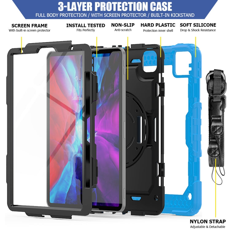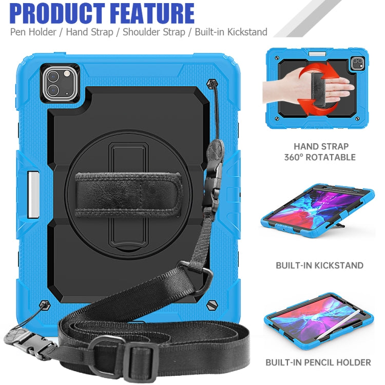 For iPad Pro 11 inch (2018) / Pro 11 inch (2020) Shockproof Colorful Silica Gel + PC Protective Tablet Case with Holder & Shoulder Strap & Hand Strap & Pen Slot(Baby Blue)