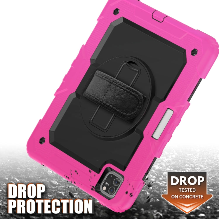 For iPad Pro 11 inch (2018) / Pro 11 inch (2020) Shockproof Colorful Silica Gel + PC Protective Tablet Case with Holder & Shoulder Strap & Hand Strap & Pen Slot(Rose Red)