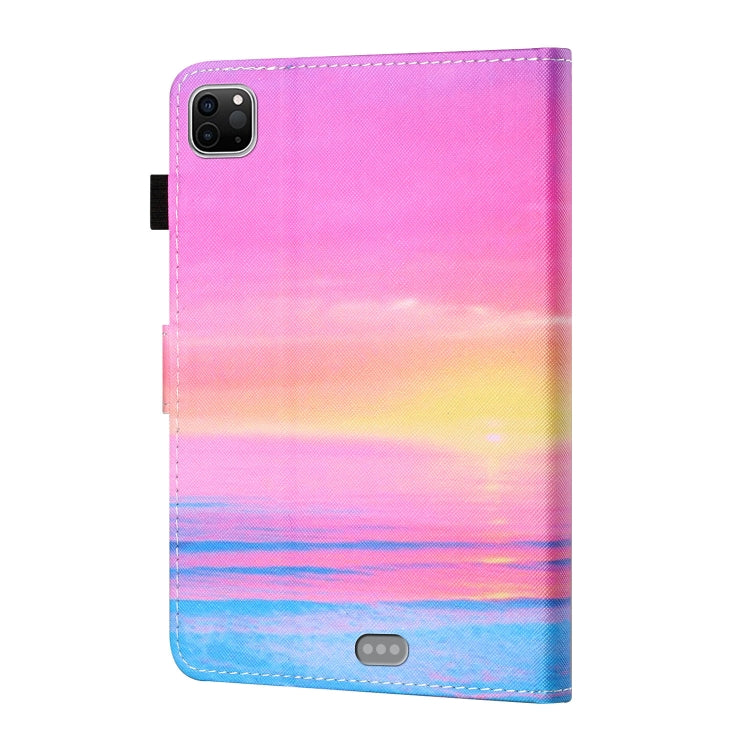 For iPad Pro 11 inch (2020) / (2018) Sewing Thread Horizontal Painted Flat Leather Tablet Case with Pen Cover & Anti Skid Strip & Card Slot & Holder & Sleep / Wake-up Function(Sunrise)