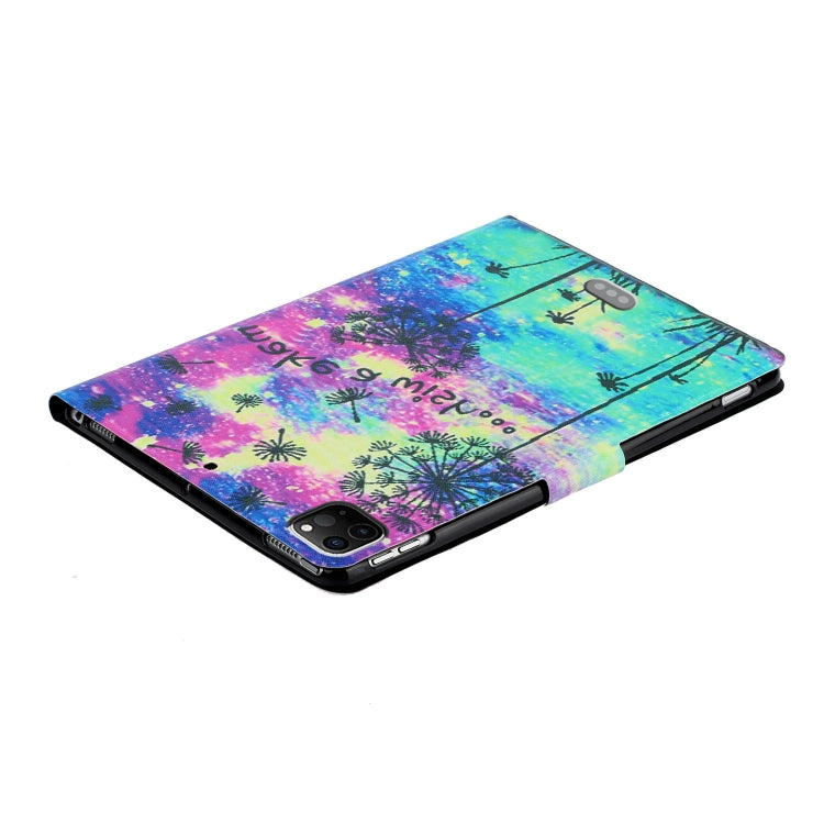 For iPad Pro 11 inch 2020 Painted Left and Right Flat Leather Tablet Case with Sleep Function & Card Slot & Buckle Anti-skid Strip and Bracket(Dandelion)