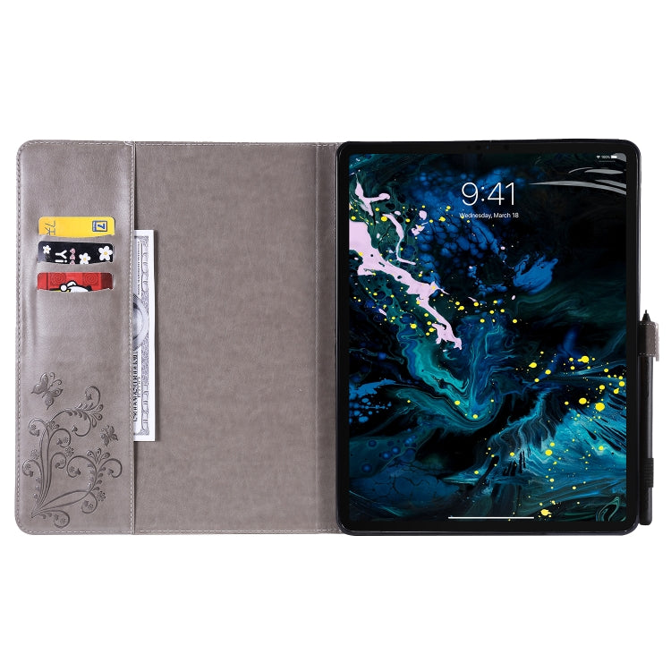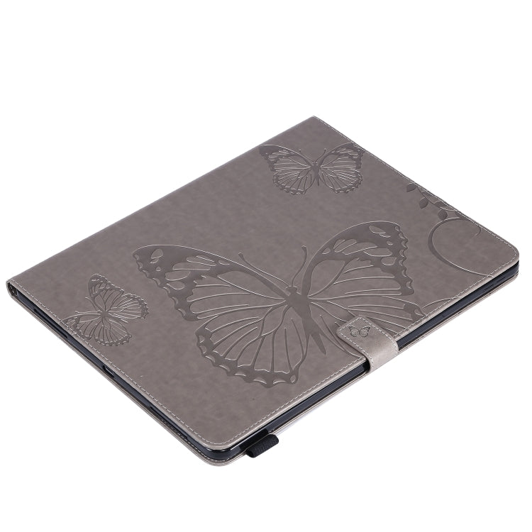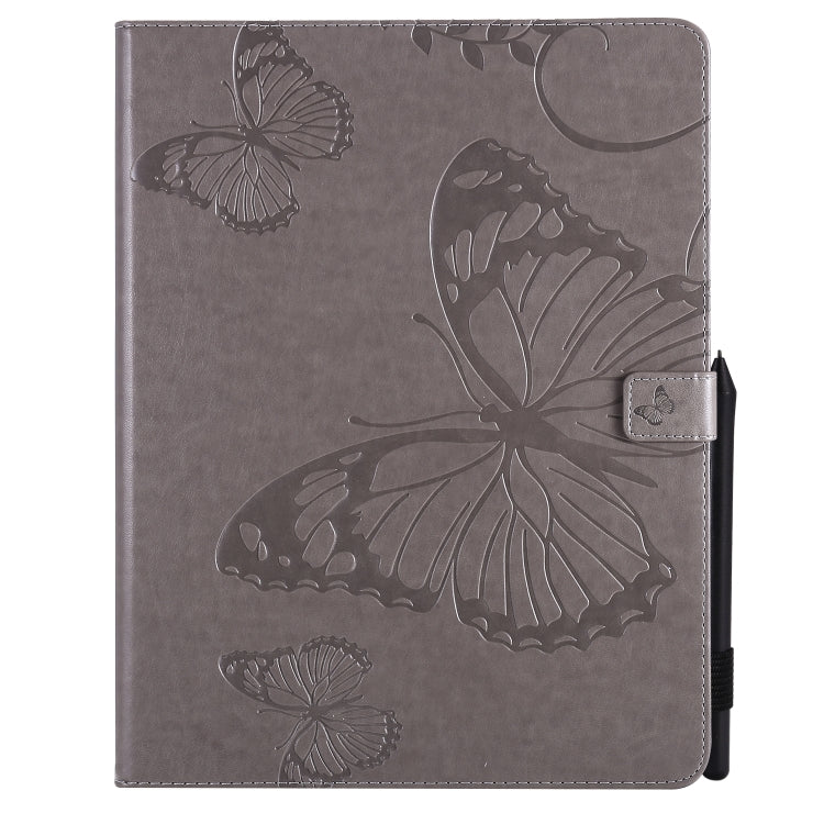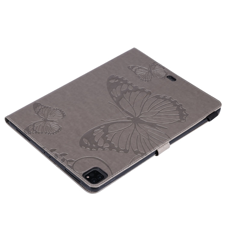 For iPad Pro 12.9 (2020) Pressed Printing Butterfly Pattern Horizontal Flip Leather Tablet Case with Holder & Card Slots & Wallet(Grey)