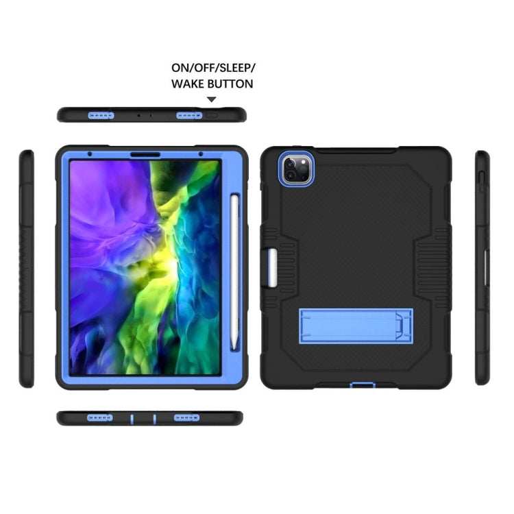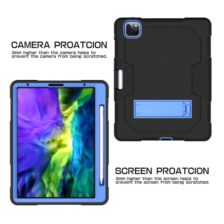 For iPad Pro 12.9 inch (2018/2020) Contrast Color Robot Shockproof Silicone + PC Protective Tablet Case with Holder(Black Blue)