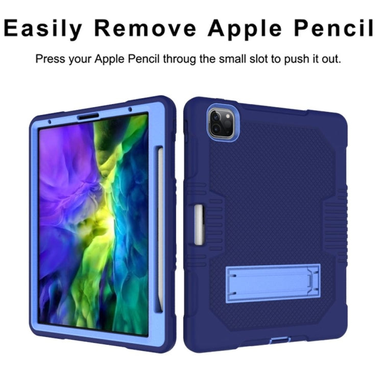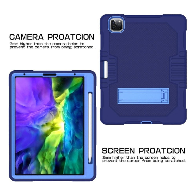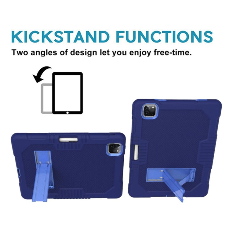 For iPad Pro 12.9 inch (2018/2020) Contrast Color Robot Shockproof Silicone + PC Protective Tablet Case with Holder(Navy Blue)
