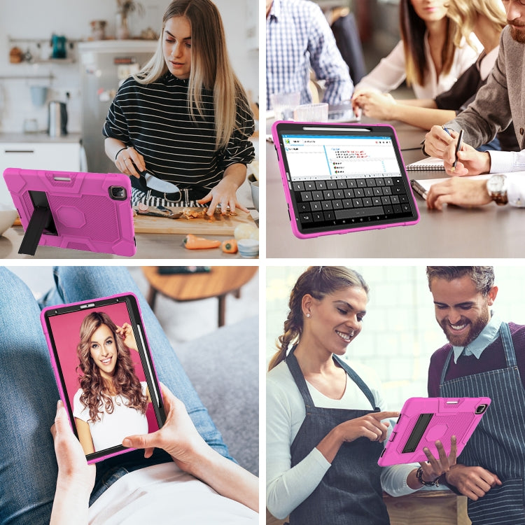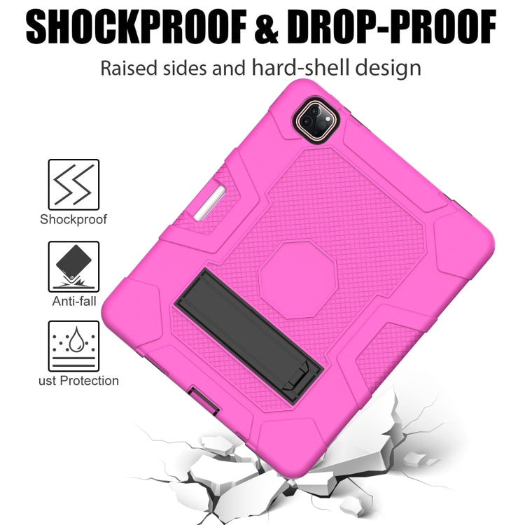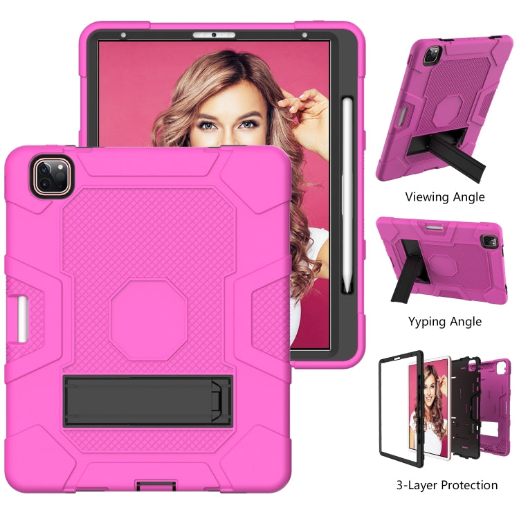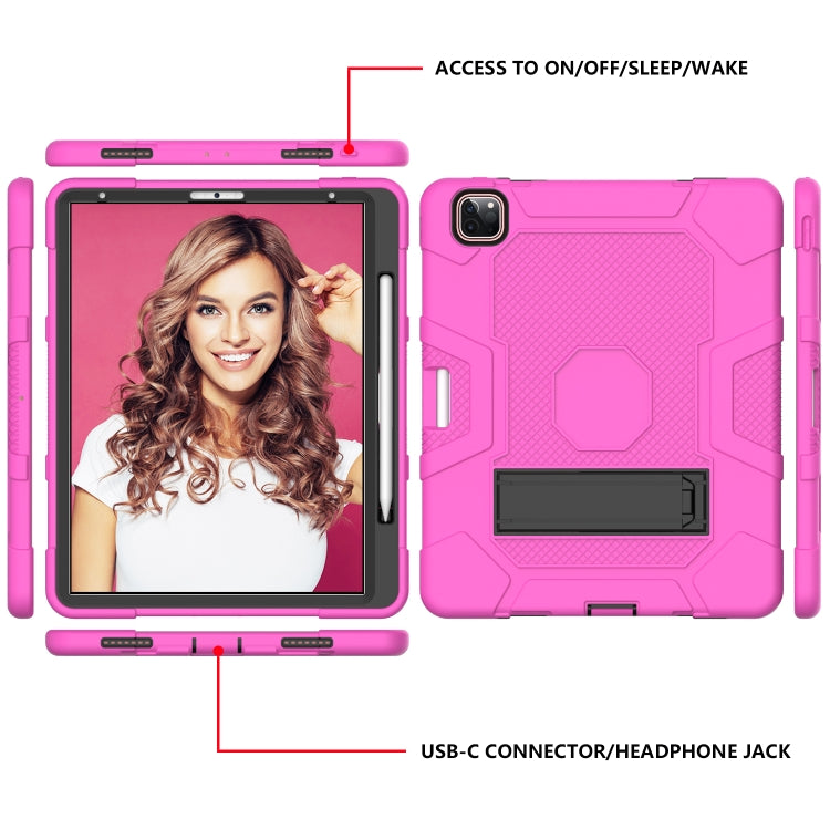 For iPad Pro 12.9 inch (2020) Contrast Color Robot Shockproof Silicone + PC Protective Tablet Case with Holder(Rose Red Black)