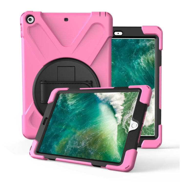 For iPad Pro10.5 / Air 10.5 2019 360 Degree Rotation PC + Silicone Protective Case with Holder & Hand-strap(Pink)