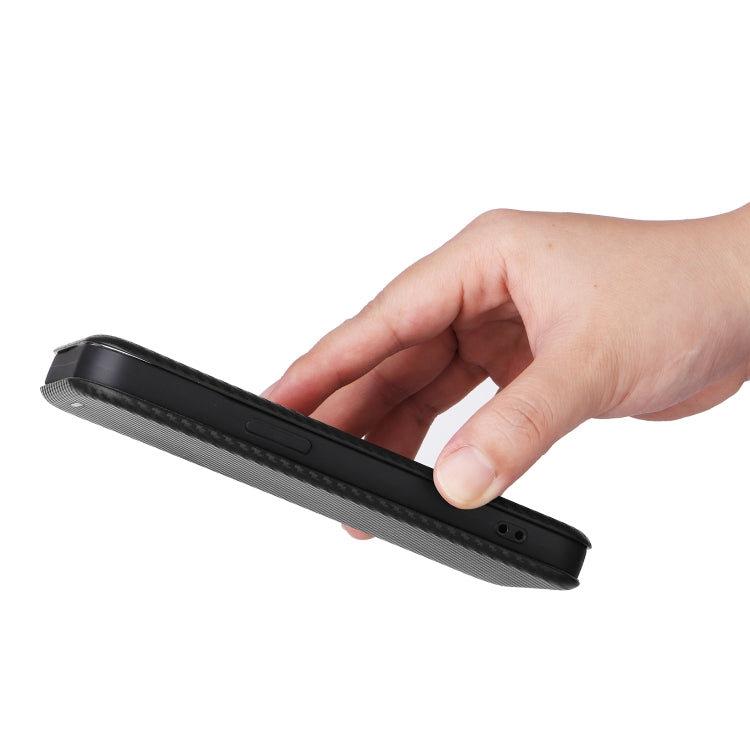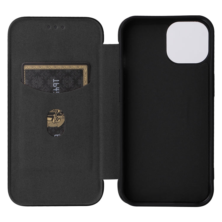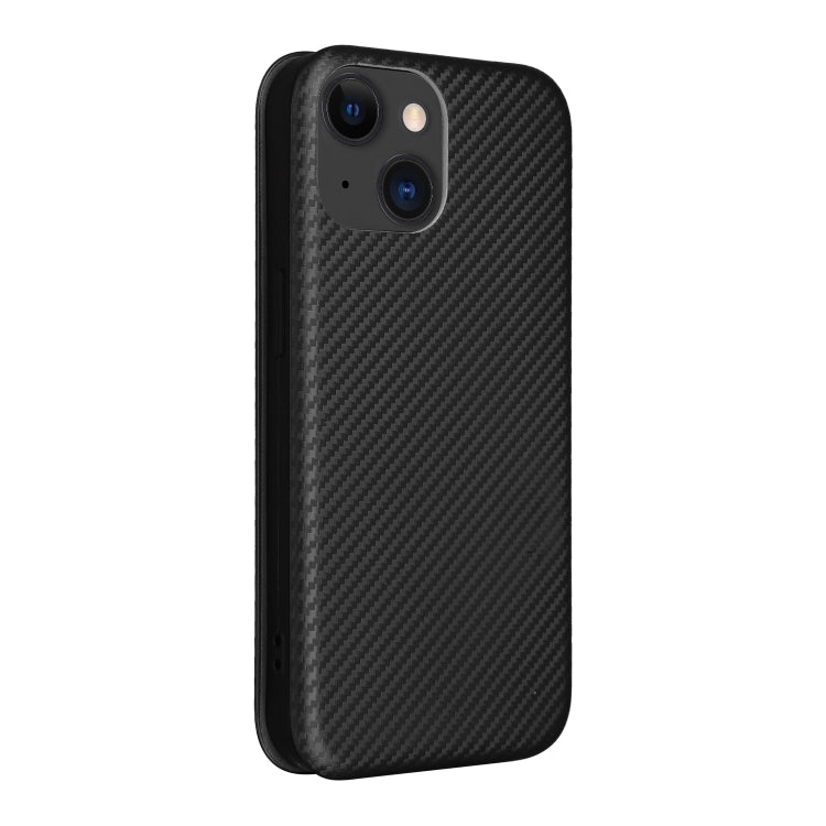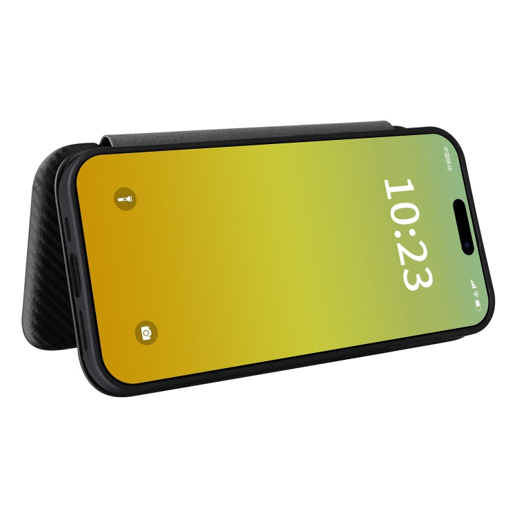For iPhone 15 Carbon Fiber Texture Flip Leather Phone Case(Black)