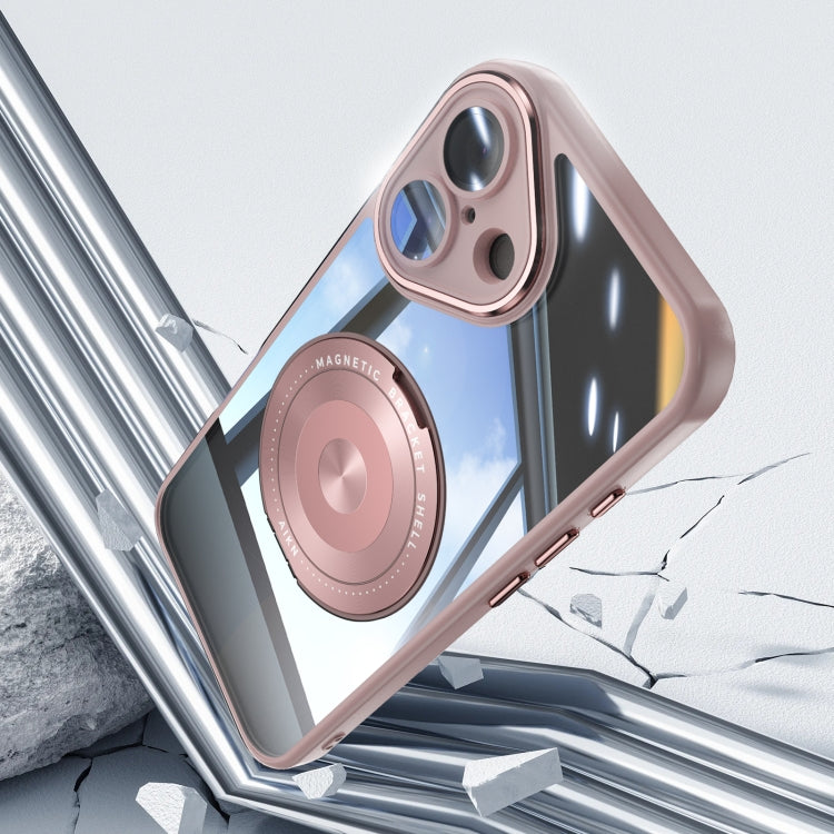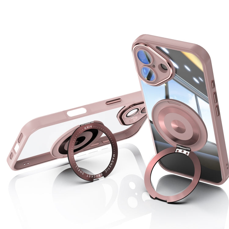 For iPhone 16 Plus 360 Holder Magsafe Acrylic Hybrid TPU Phone Case(Pink)