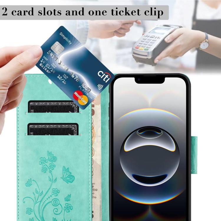 For iPhone 16e Butterfly Flower Pattern Flip Leather Phone Case(Green)