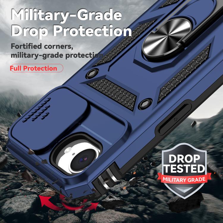 For iPhone 16e Sliding Camshield Holder Phone Case(Blue)