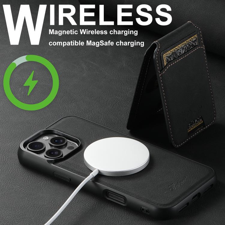 For iPhone 16e Suteni H16 Litchi Texture Leather Detachable Wallet Back Phone Case(Black)