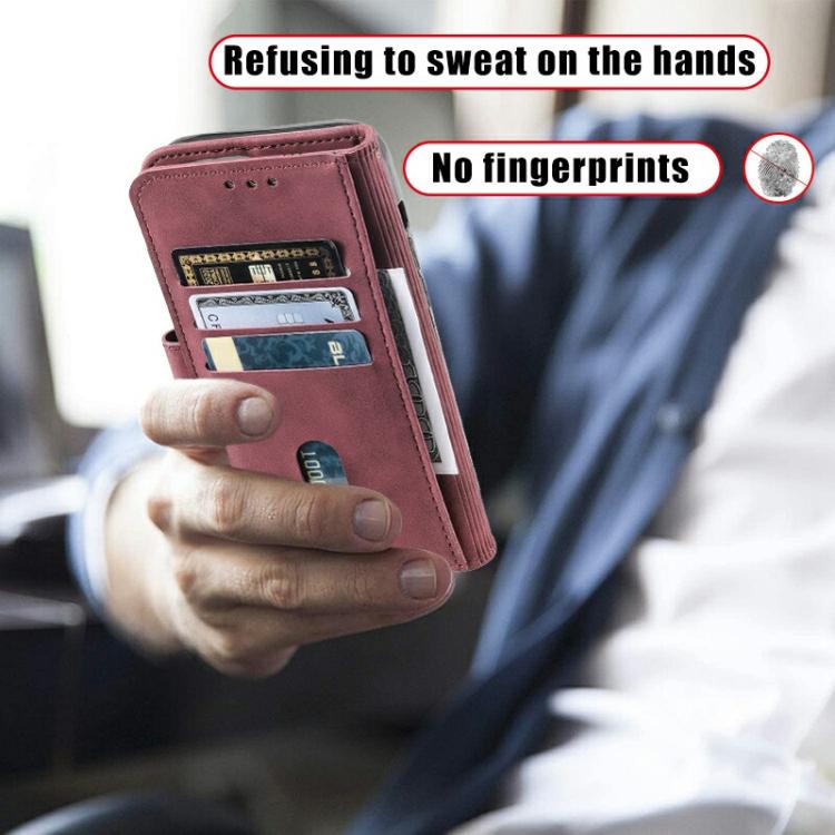 For iPhone 16e TTUDRCH Embossed Line Splicing Leather Phone Case(Wine Red)