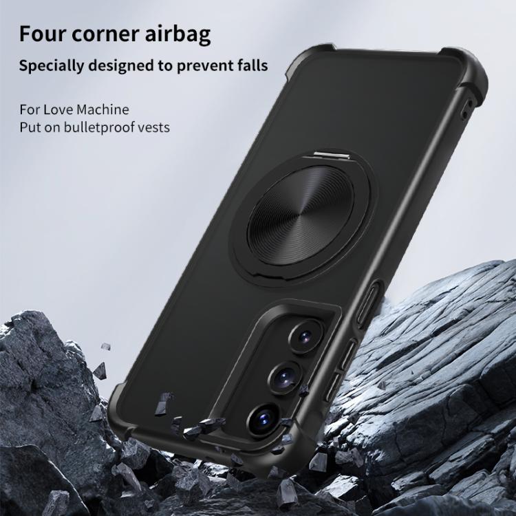 For Samsung Galaxy A15 5G CD Texture 360 Degree Rotating Holder MagSafe Phone Case(Purple)