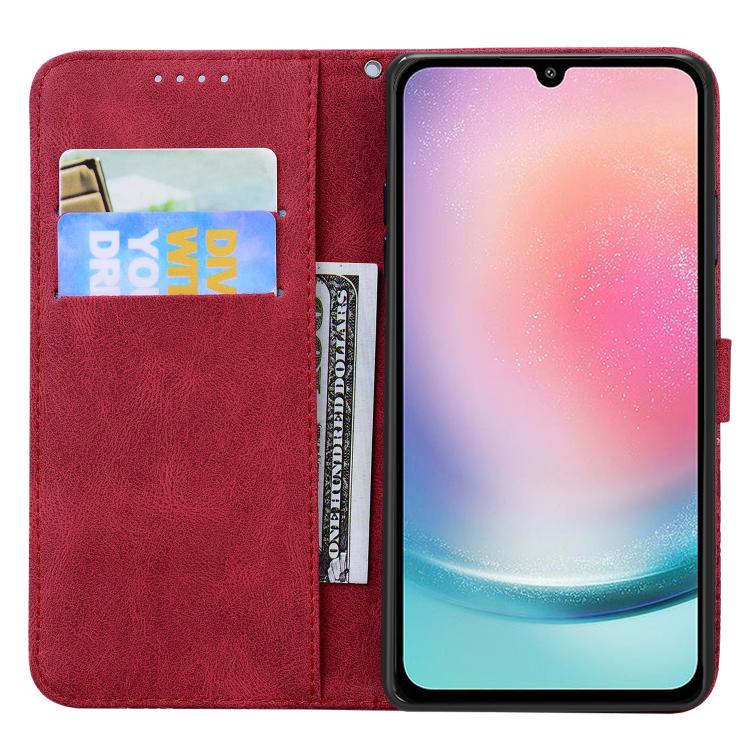 For Samsung Galaxy A36 5G Retro Skin Feel Butterflies Embossing Horizontal Flip Leather Phone Case(Red)